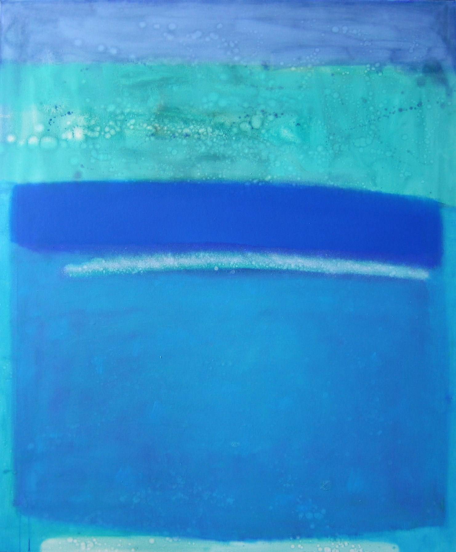 Obraz posiada delikatną, prostą i elegancką ramę (szer. 2 cm) w kolorze przetartego srebra. Namalowany został w 2009 r. na wystawę "OBSESSION". Utrzymany w kolorystyce błękitno- turkusowej.