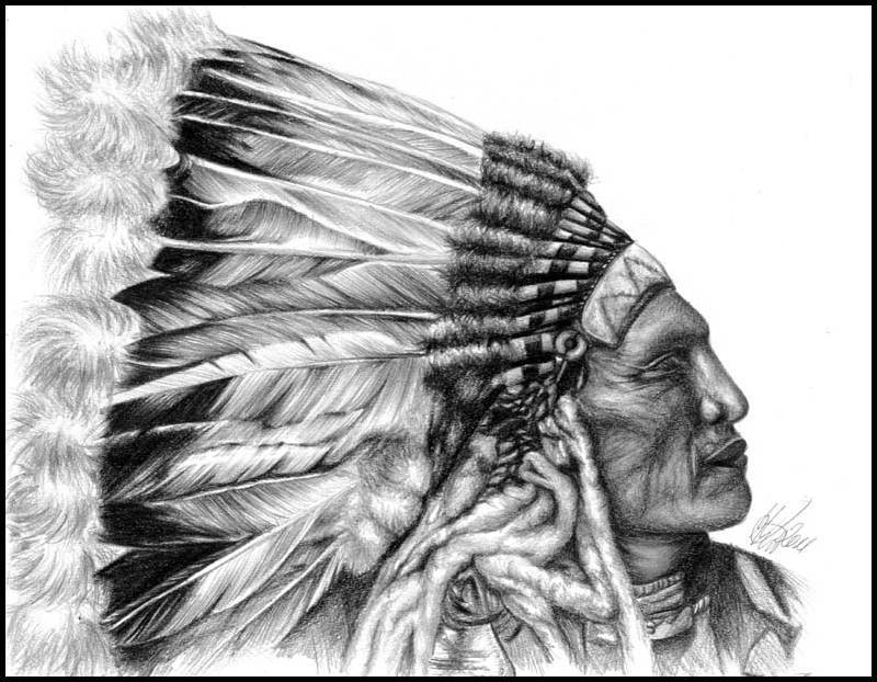 Indianin rysowany na zamówienie. Ołówki na papierze formatu A4 (210x297 mm), 180g.