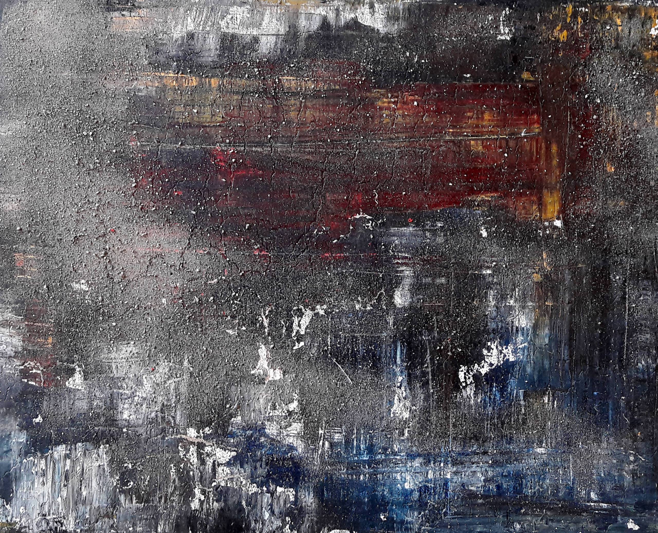 Spękanie. Obraz malowany akrylem na płótnie połączony z szamotem