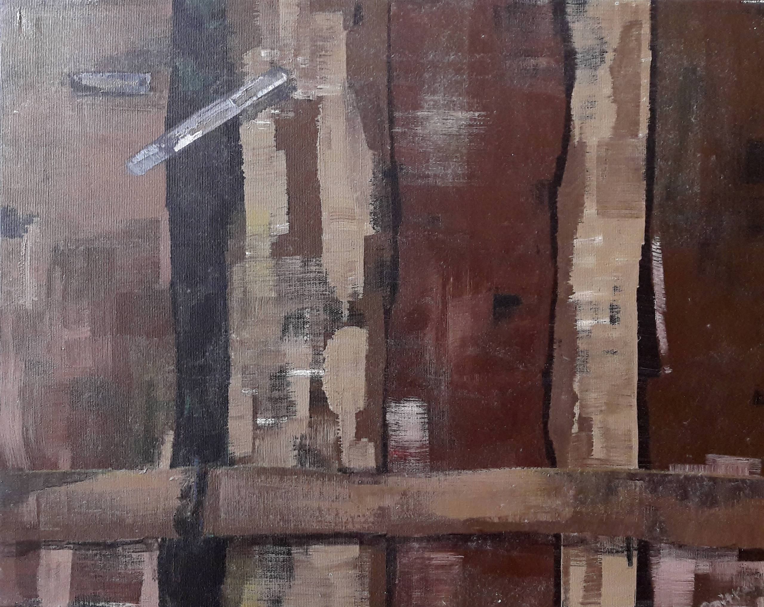 Wejście. Obraz akrylowy malowany na płótnie inspirowany drewnianą furtką.