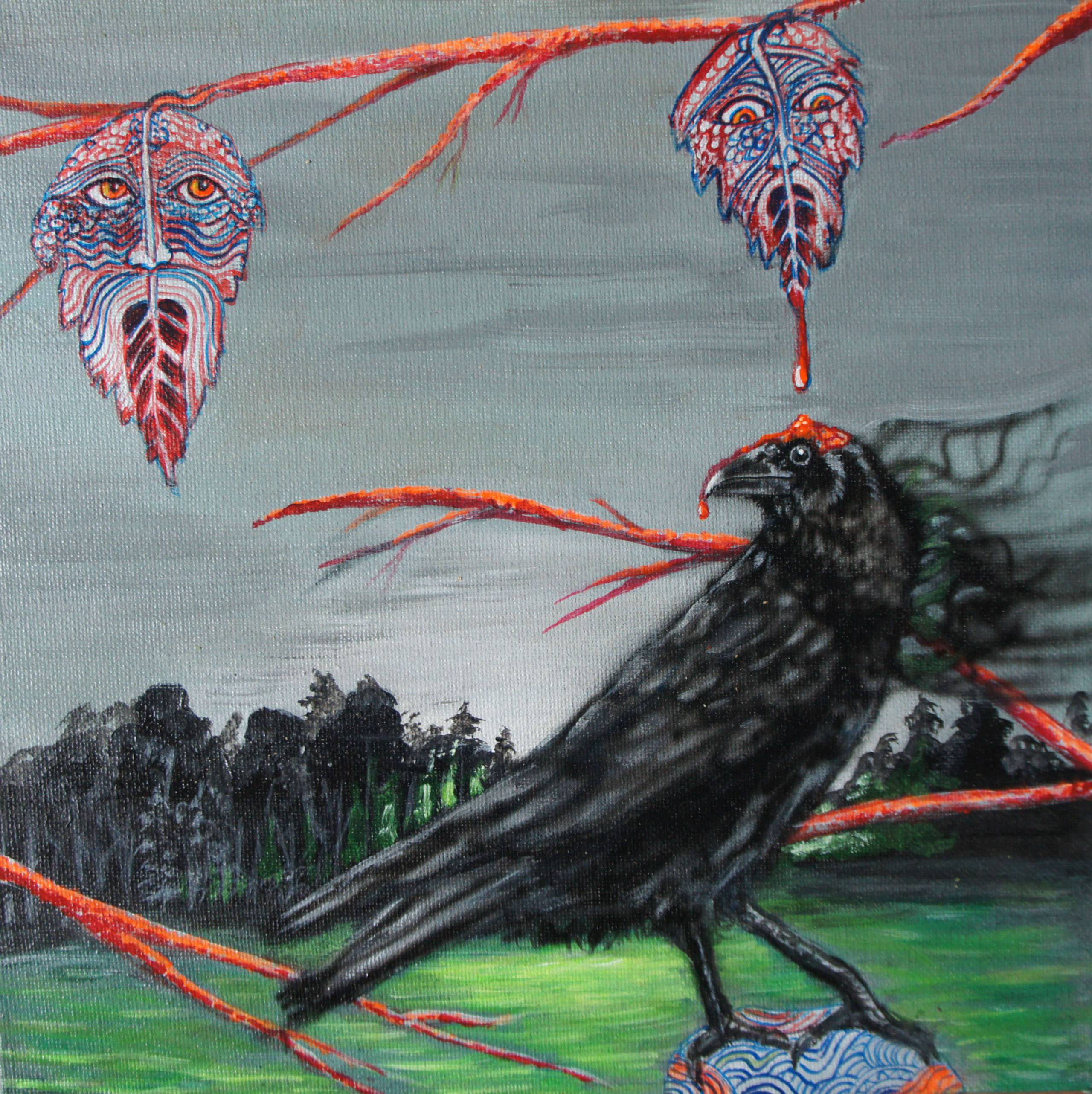Kruk to magiczne zwierzę, strażnik Światła i ciemności.Głęboka, ciemna czerń jego piór odzwierciedla zlewanie się dobra i zła. Dopóki światło nie pokona ciemności, a pióro nie zostanie wydobyte na światło dzienne, nie będzie lśnić. Dlatego też kruk pomoże zmienić życie oraz siebie samego. Każdy z elementów tryptyku na wymiary 30x30 cm