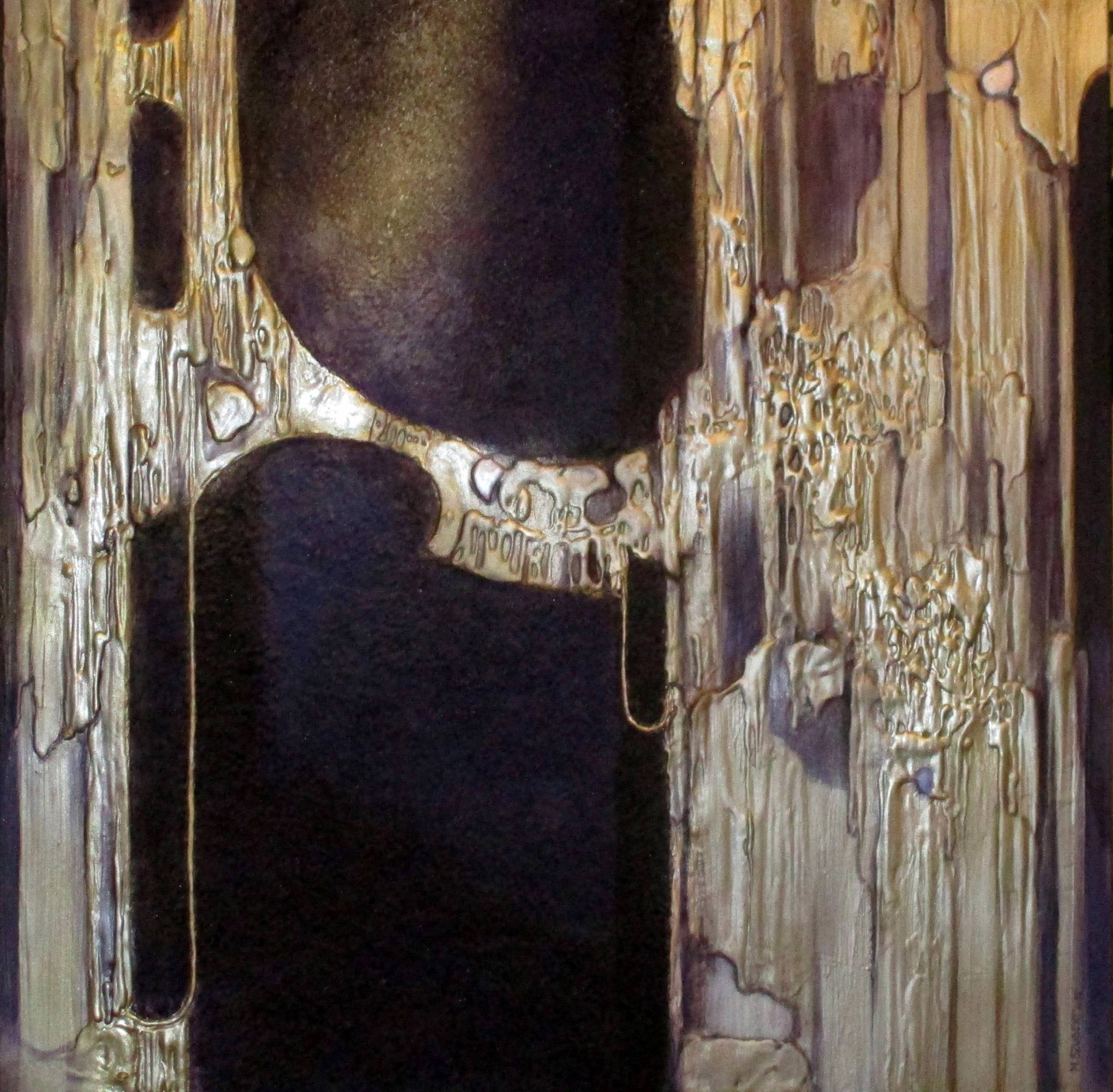 Obraz, na który patrzysz, jest jak z innej planety. Dominują w nim głębokie, ciemne odcienie, które przechodzą w olśniewające złoto i srebro. Kształty są płynne, jakby ktoś rozlał na płótnie ciekły metal, pozwalając mu płynąć, gdzie chce. Przyciąga wzrok, hipnotyzuje. Tak jak w sennej fantazji, gdzie reguły logiki nie mają znaczenia. Patricja, mamo, on wygląda jak cieknący miód! Artysta skorzystał tutaj z techniki impastu, co dodaje tekstury i życia temu dziełu. Czujesz, że możesz prawie dotknąć tych spływających struktur. Wywołuje to atmosferę tajemniczości, jak gdyby obraz krył w sobie zagadkę do rozwiązania. Jakie emocje? Ech, to coś między zachwytem a pewnym niepokojem. That's magic! Może symbolizuje przemijanie czasu, a może po prostu jest piękną abstrakcją. Bez względu na interpretację, ten obraz, jak żaden inny, chwyta za serce i nie puszcza.