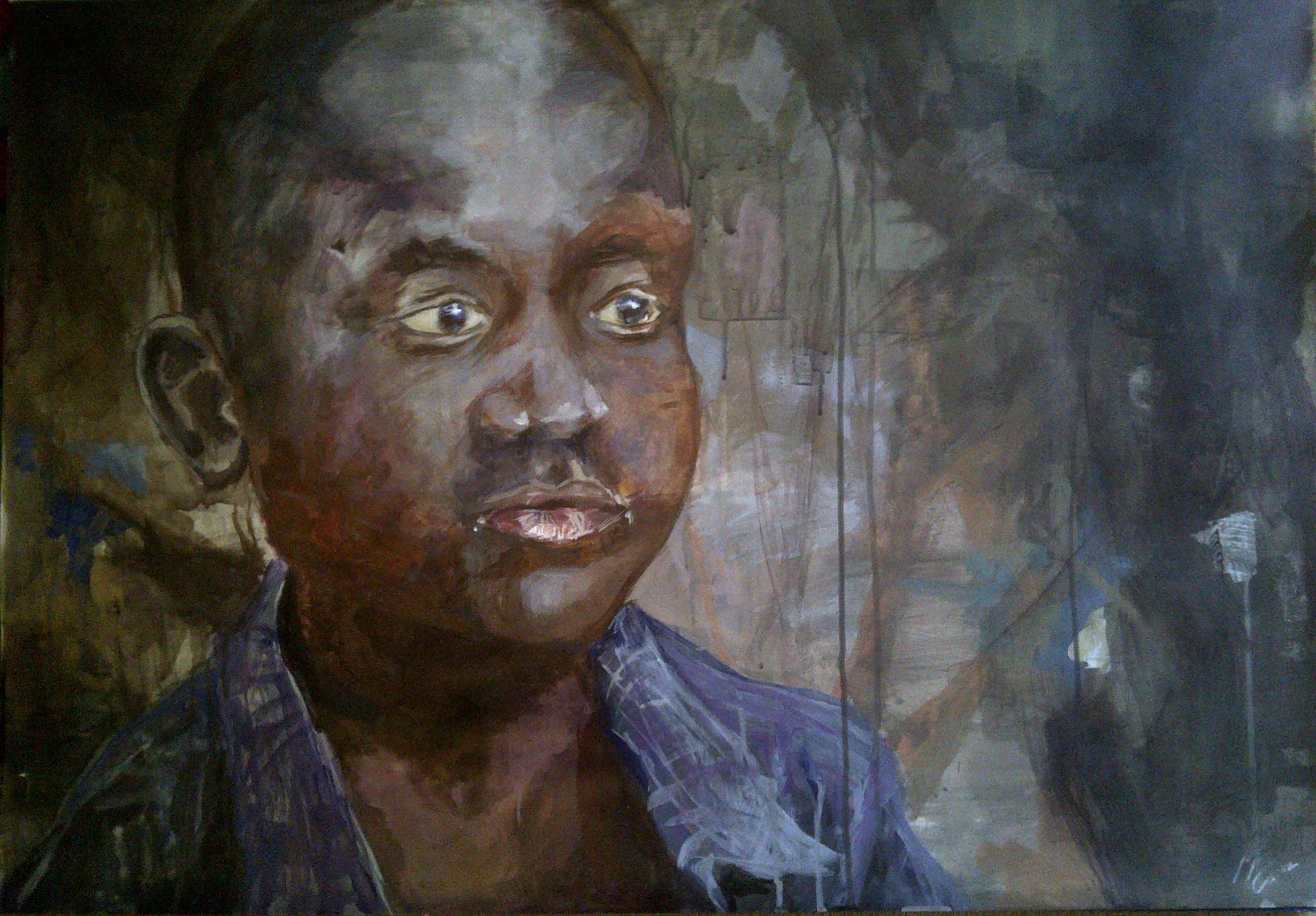 Na obrazie widzimy twarz młodego chłopca, który spogląda gdzieś w dal, jakby zamyślony. Kolory są zgaszone, dominują odcienie brązu i szarości, co nadaje całej kompozycji głębi i pewnej tajemniczości. Tło jest abstrakcyjne, jakby niedokończone, co skupia naszą uwagę na postaci chłopca. Jego oczy są pełne wyrazu, emanują spokojem, a może lekką melancholią. Atmosfera obrazu jest intymna, jakbyśmy byli świadkami jakiegoś osobistego momentu. Artysta zastosował technikę przypominającą akwarelę, z miękkimi przejściami i subtelnymi detalami. To nadaje obrazowi swoisty "flow", jakby płynął. Widz, patrząc na ten obraz, może poczuć mieszankę spokoju i niepewności. Dzieło wywołuje pytania: o czym myśli chłopiec? Jego twarz wydaje się być enigmatycznym lustrem naszych własnych przemyśleń. „A ja myślę, że on jest smutny” – mogłoby powiedzieć dziecko. Taka jest siła malarstwa – każdemu mówi coś innego. Jedno jest pewne: obraz budzi emocje, dodaje niepewności, ale i fascynacji. Looking deeper, możemy dostrzec delikatność i umiejętność oddania emocji, która czyni to dzieło wyjątkowym.
