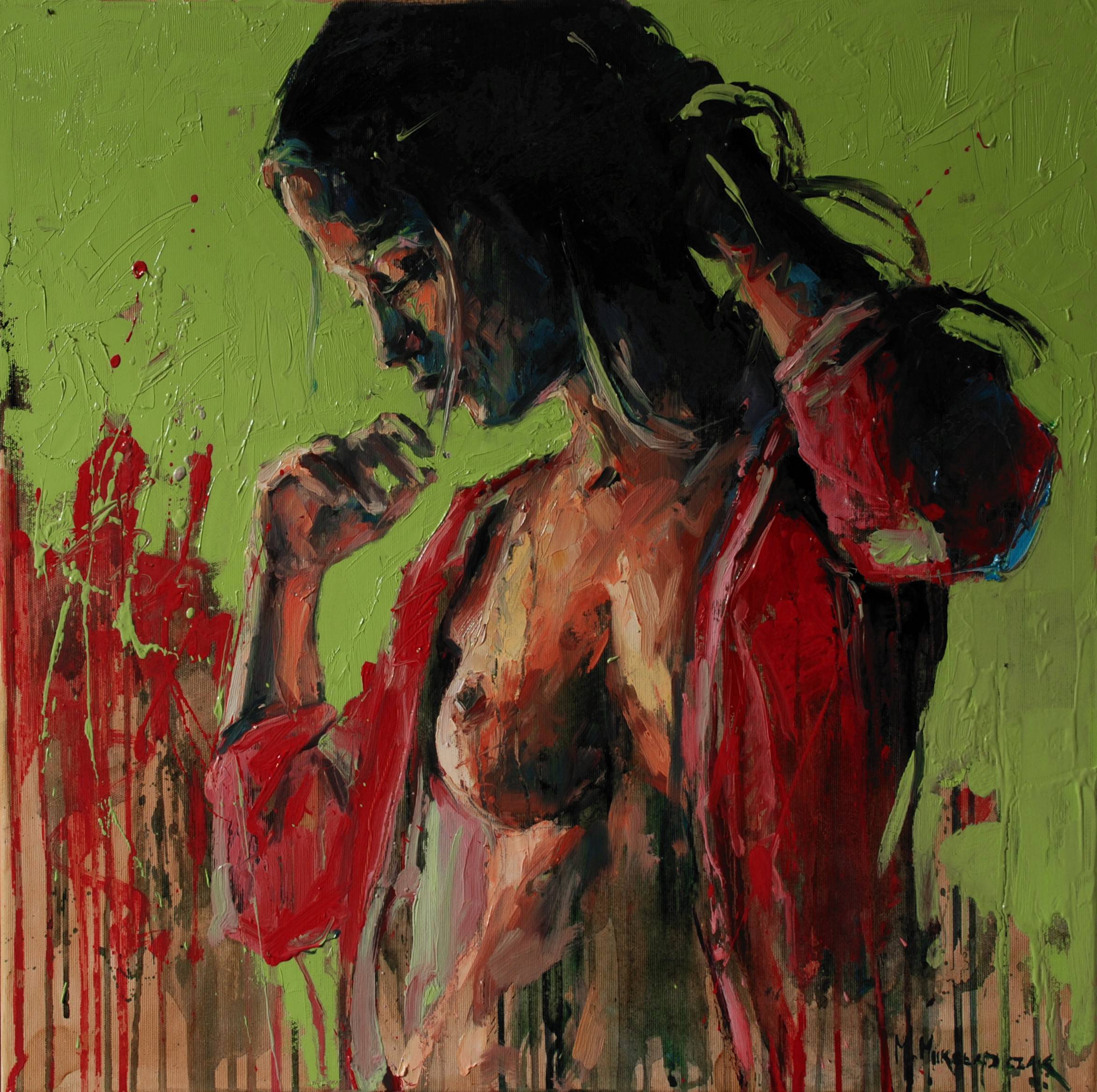 Technika własna + farba olejna. Praca ma zamalowane boki i nie wymaga oprawy. Data: 2016