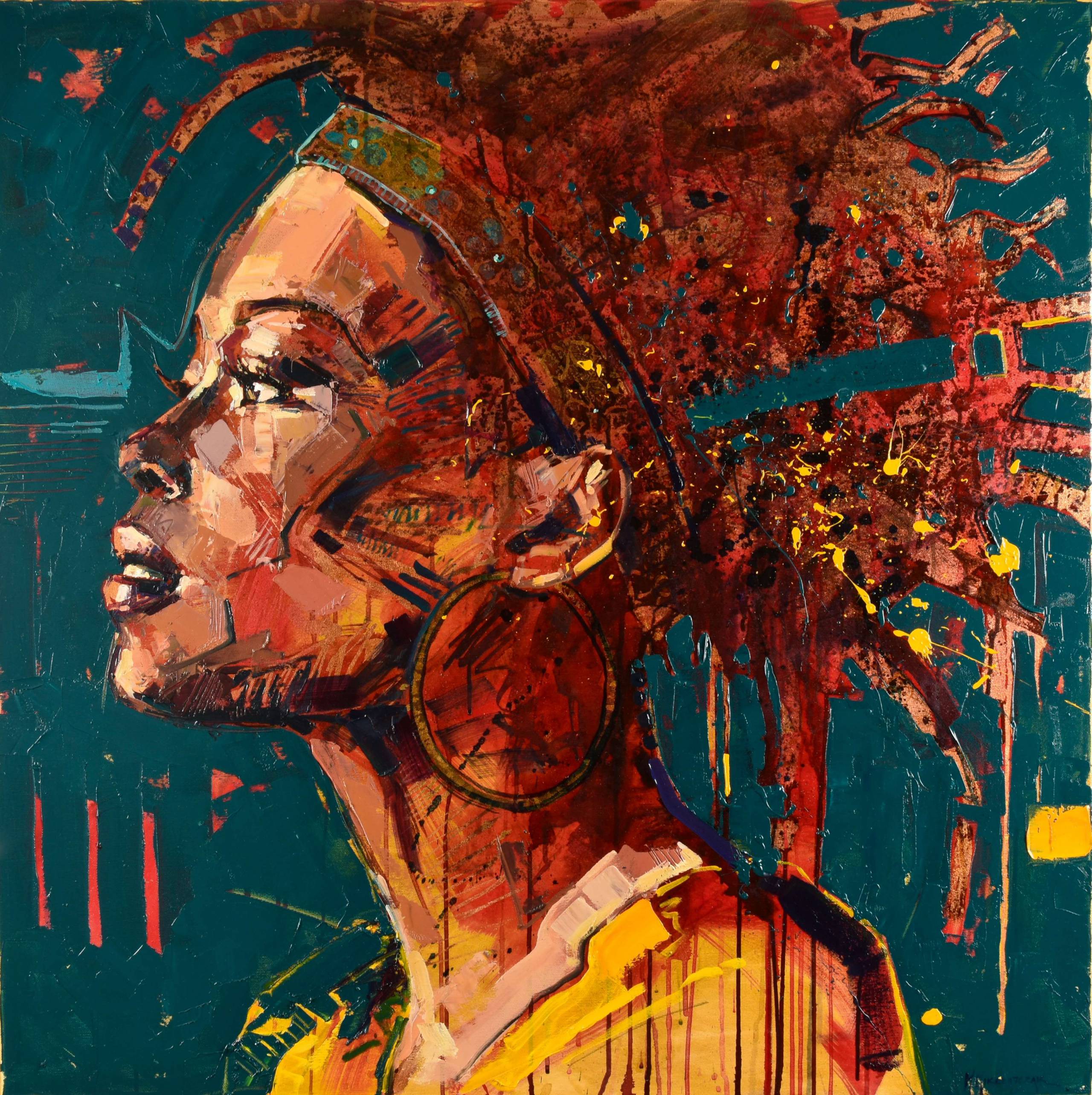 Technika własna połączona z farbą olejną i szlagmetalem i płatkami miedzi. Obraz ma zamalowane boki i nie wymaga oprawy.