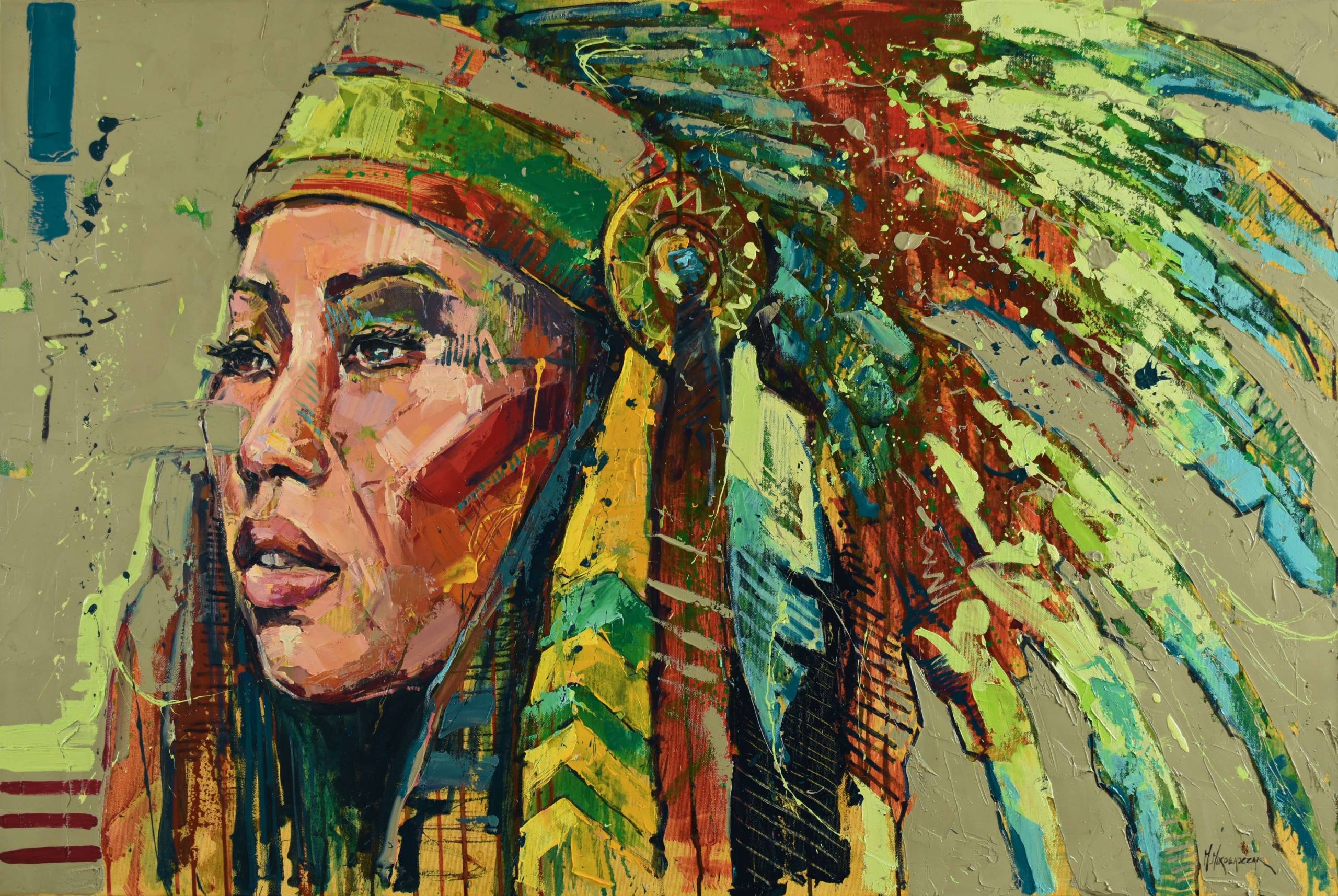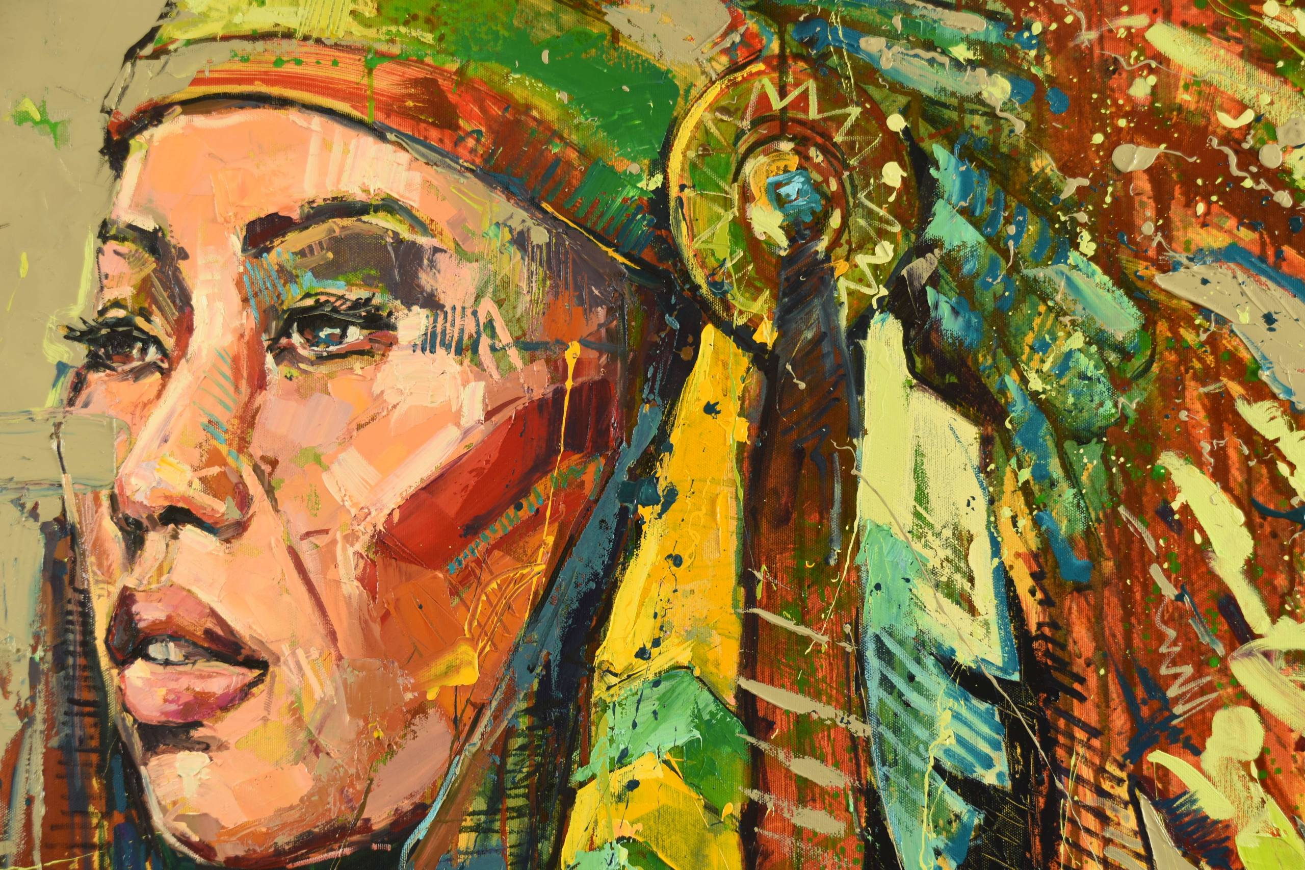 Technika własna połączona z farbą olejną. Data: 2019. Boki obrazu są starannie wykończone, nie wymaga oprawy.