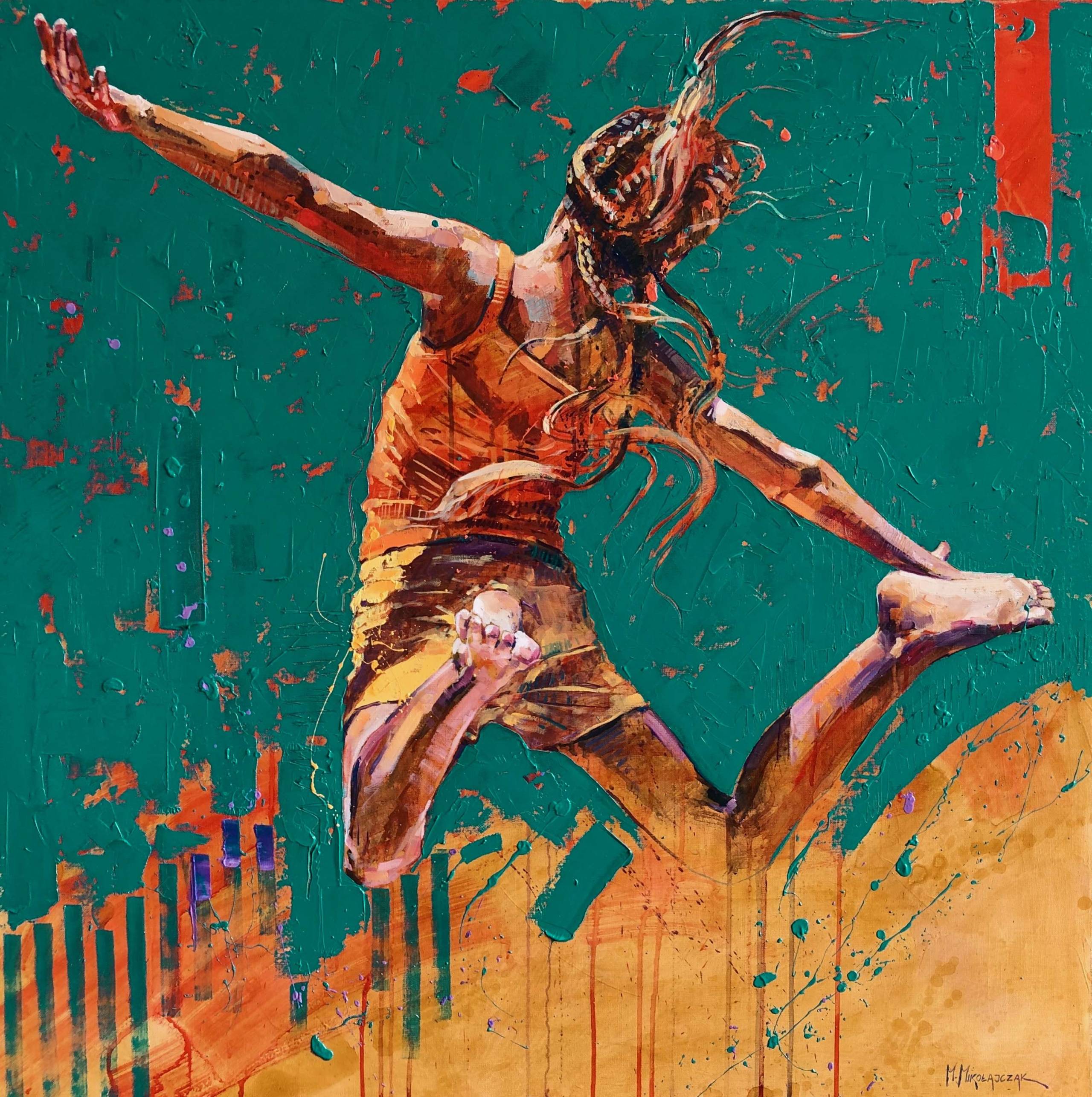 Technika własna połączona z farbą olejną. Praca jest namalowana na płótnie lnianym. Boki obrazu są starannie wykończone, nie wymaga oprawy.