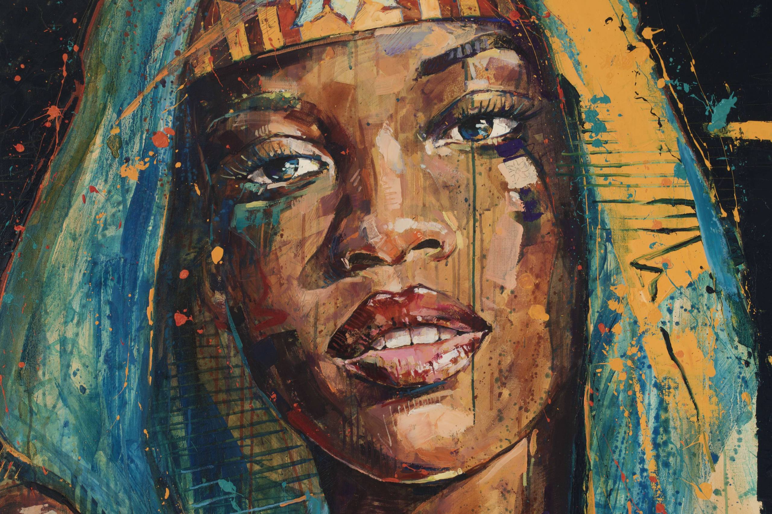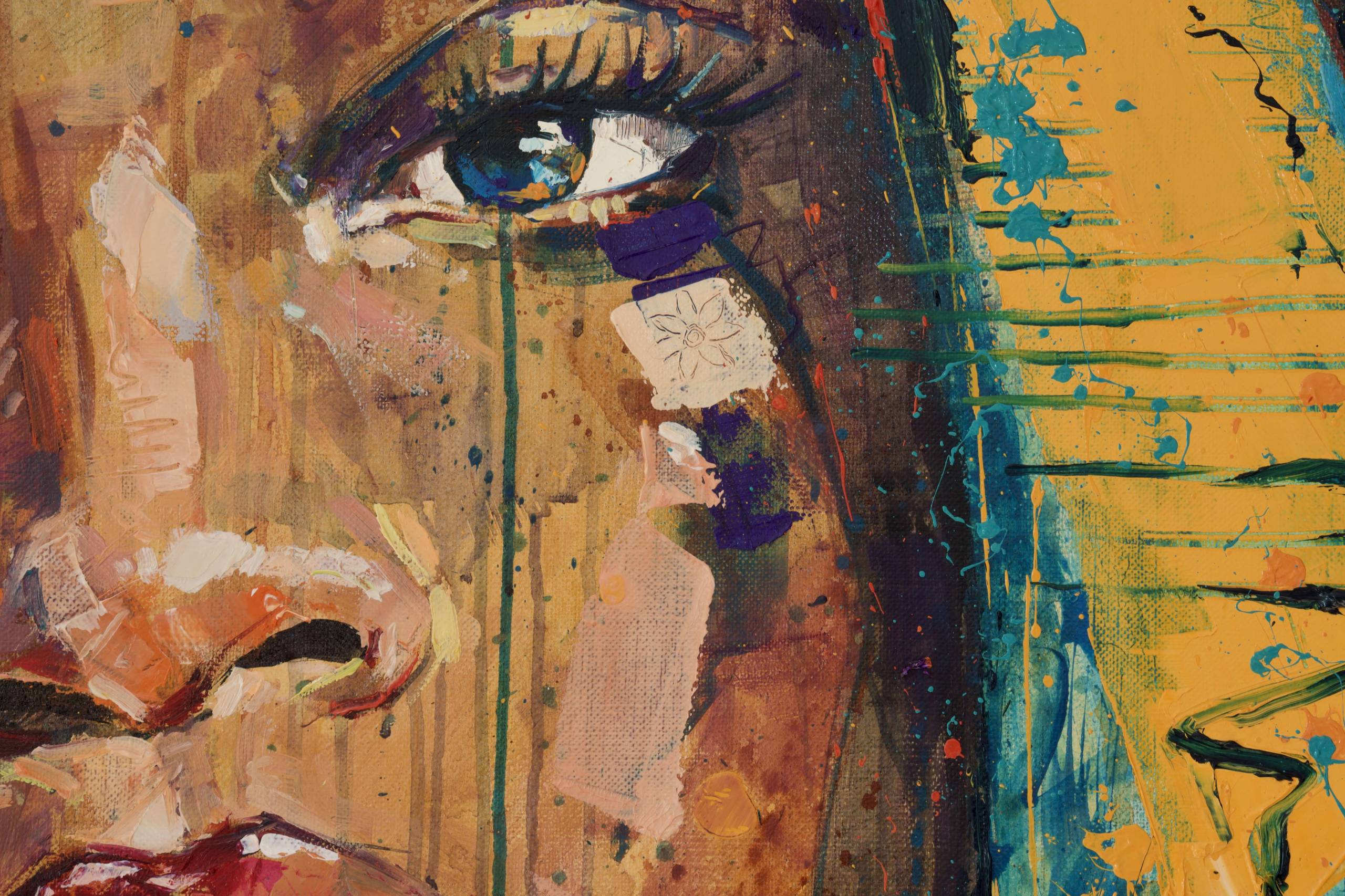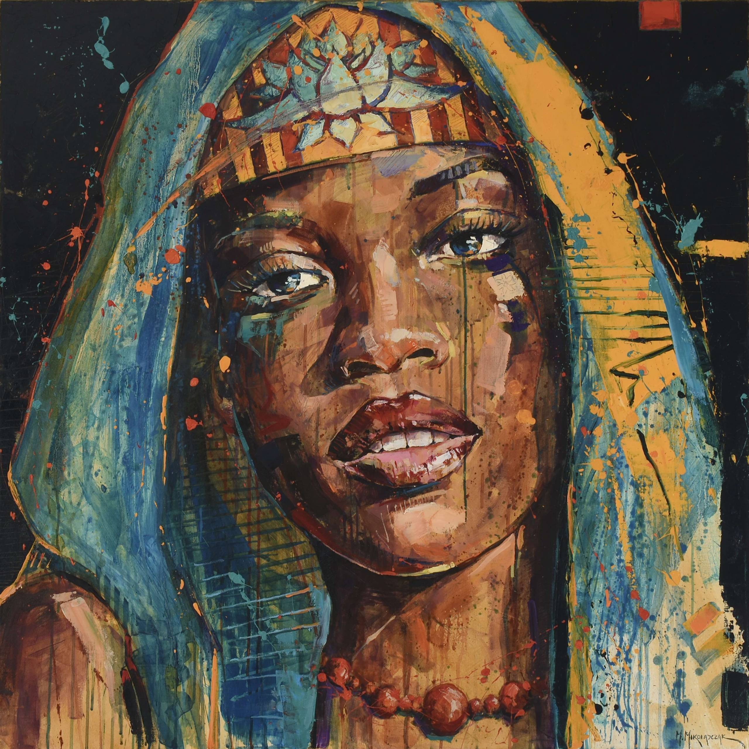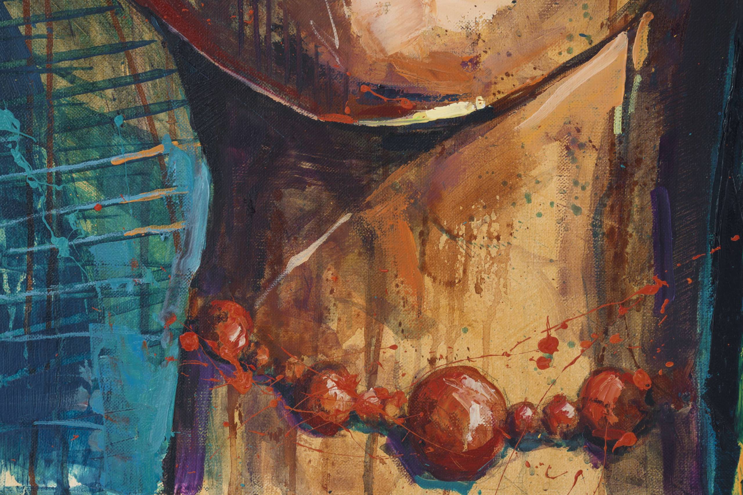Technika własna połączona z farbą olejną. Praca ma starannie wykończone boki, nie wymaga oprawy. Płótno lniane.