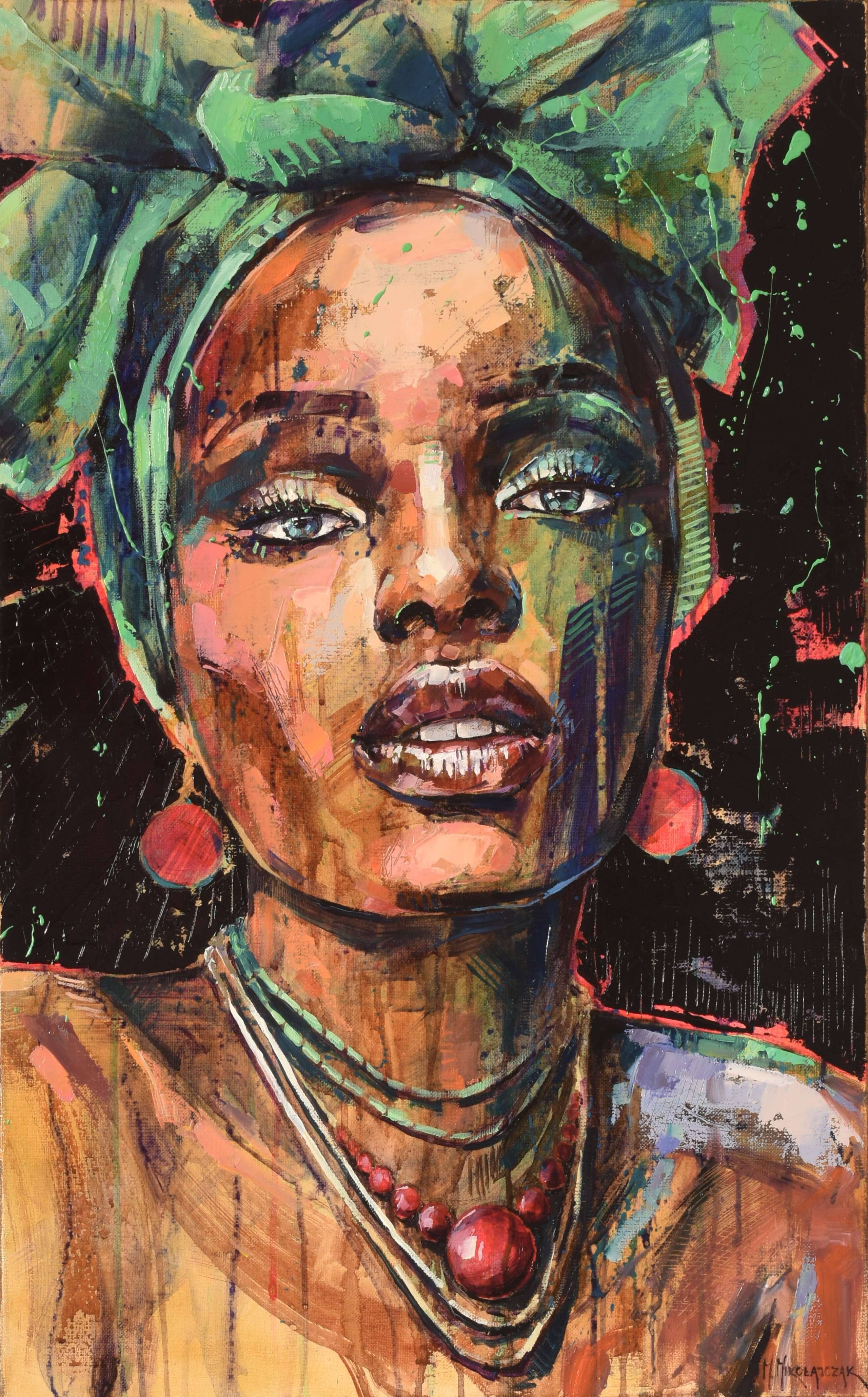 Technika własna połączona z farbami olejnymi. Praca powstała na płótnie lnianym. Boki są starannie wykończone, nie wymaga oprawy.