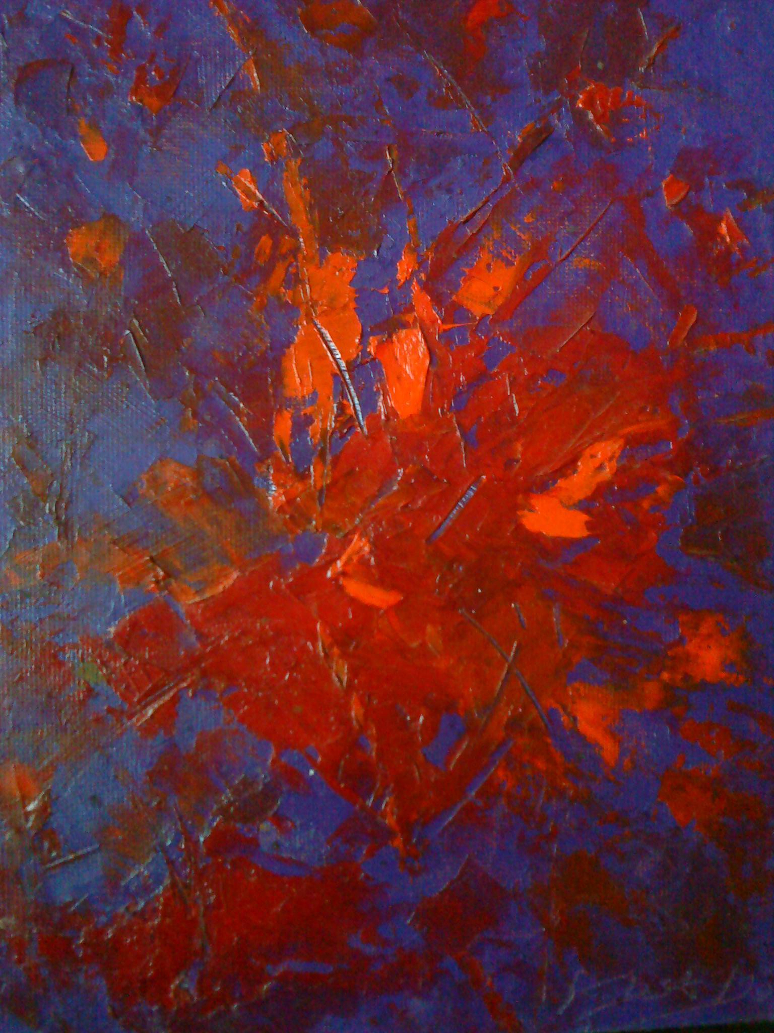 Obraz to istna eksplozja kolorów. Dominują na nim głęboki fiolet i intensywna czerwień. Te dwa kolory zderzają się ze sobą w chaotycznym, ale fascynującym tańcu. Wygląda, jakby artysta z pasją rozrzucał farby, tworząc dynamiczną kompozycję pełną energii. Nastrój jest naprawdę intensywny, można by powiedzieć, że jest trochę "wild". Technika malarska wydaje się być impastowa, co dodaje dziełu trójwymiarowości, a grube pociągnięcia pędzla nadają mu surowości. Ktoś mógłby powiedzieć, że to chaos, ale dla mnie to prawdziwa sztuka. Atmosfera... trudno ją określić jednym słowem, ale chyba najbliżej temu emocjonalnemu rollercoasterowi do burzliwej nocy. Obraz może wywoływać różne emocje, od niepokoju po fascynację. W końcu, to sztuka, gdzie każdy znajdzie coś dla siebie. Jest w tym coś magicznego, co przypomina dziecięce marzenia: "To tak jak kolorowe konfetti na niebie!" – mógłby powiedzieć siedmiolatek, zachwycony tą feerią barw. Czy ten obraz to zwykła abstrakcja, czy może jakaś nieujarzmiona emocja artysty? Pozostaje to tajemnicą. Ale jedno jest pewne, trudno oderwać od niego wzrok.