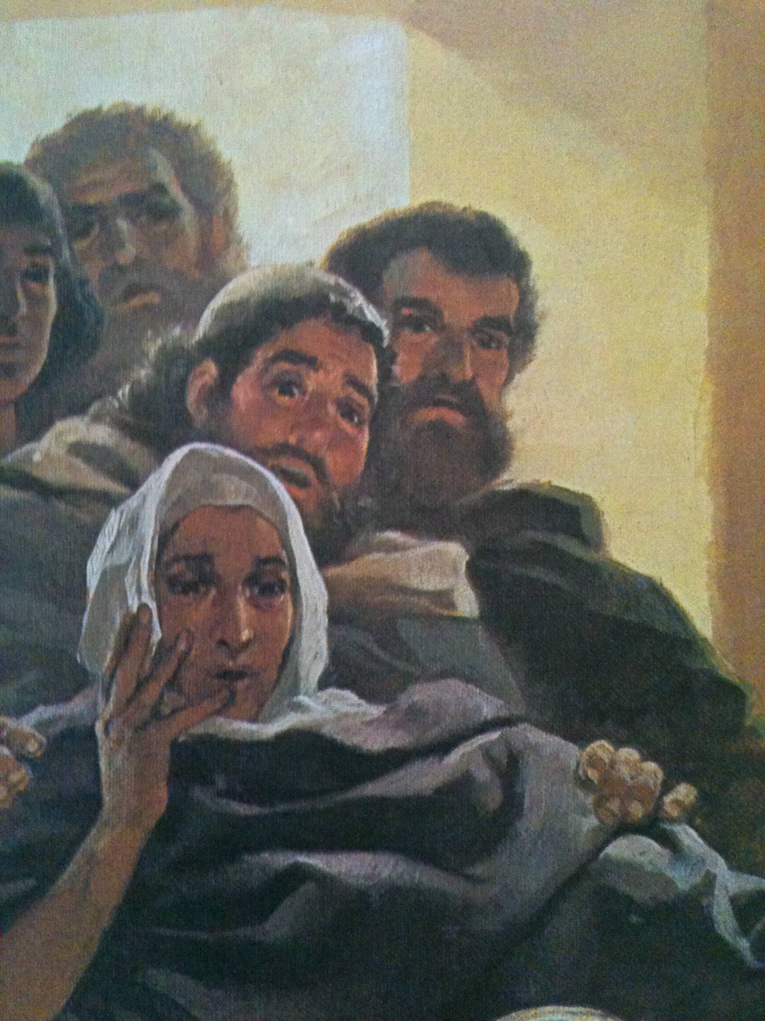 Obraz, na który patrzymy, to pełen emocji i intensywności scena, gdzie centralnym punktem są cztery postacie. Ich twarze są wyraziste, a spojrzenia przenikliwe, jakby każde z nich nosiło ciężar własnych myśli. Kolory są stonowane, z przewagą ciepłych odcieni brązu i beżu, które nadają całości subtelnej głębi. Światło i cienie grają tu ważną rolę, podkreślając rzeźbioną strukturę ich twarzy. Kompozycja jest zwarta, postacie zdają się być sklejone w jednym emocjonalnym kadrze. Styl obrazu przypomina tradycyjne malarstwo realistyczne, a technika artystyczna jest precyzyjna, co dodaje dziełu klasycznego uroku. Może w tym tkwi geniusz, że to wszystko wygląda tak realnie, że aż można poczuć obecność postaci obok siebie. Obraz wywołuje wręcz tangible napięcie. Ci ludzie wydają się pochłonięci w głębokiej zadumie, może nawet smutku. Można się zastanawiać, co ich łączy. Atmosfera jest gęsta, pełna niewypowiedzianych słów, zagadek. Jednocześnie w tej ciszy jest coś ciepłego, jakby wspólnota uczuć wiązała te postacie razem. "Patrz, mam taki ręcznik na głowie jak te panie" – powiedziałoby dziecko, zauważając detale na obrazie. Obraz skłania do refleksji, do poszukiwania ukrytych znaczeń. To dzieło jest jak otwarta książka emocji, pełne niewypowiedzianych historii, które każdy widz nosi potem w sercu.