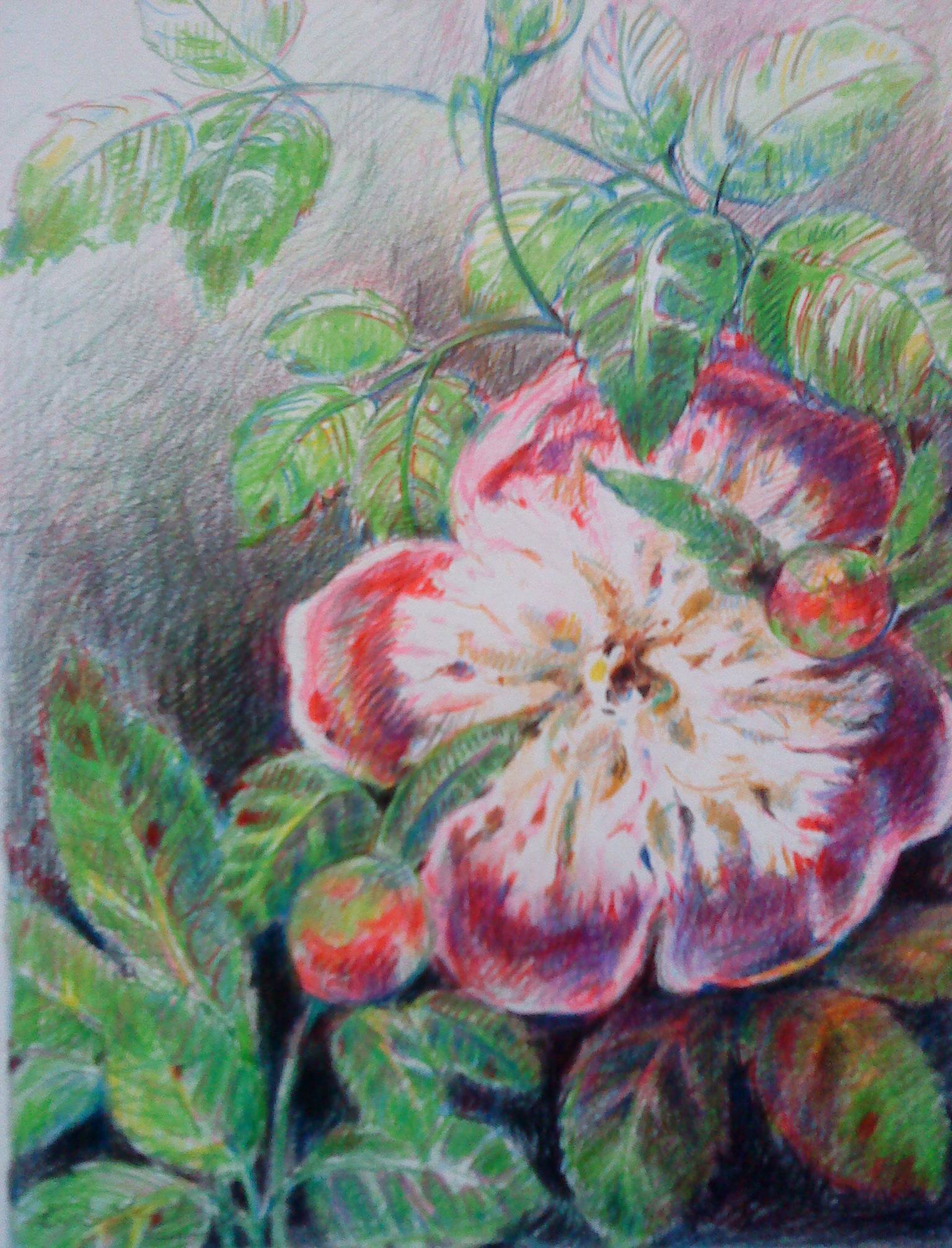 Obraz emanuje świeżością, pełen żywych kolorów i organicznych kształtów. Dominują zielenie i czerwienie, które przeplatają się niczym w tańcu. Kwiat, główny bohater tej kompozycji, jest otoczony bujnymi liśćmi. W centrum kwiat w niezwykłym odcieniu czerwieni, delikatnie przechodzącej w róż to wręcz bije w oczy. Liście zielone są pełne różnych odcieni, od soczystej trawy po głęboki, niemal szmaragdowy. Tło jest raczej stonowane, co sprawia, że kwiat wydaje się wyłaniać z obrazu. Atmosfera jest niezwykle sielska, niemal sielankowa. Czujemy się, jakbyśmy stali na łące pełnej dzikich kwiatów, słuchając śpiewu ptaków. Artystyczny styl przypomina techniki impresjonistyczne — pełne delikatnych pociągnięć, które tworzą wrażenie ruchu i lekkości. Chyba miałbym ochotę zerwać ten kwiat i włożyć do wazonu, tak pięknie wygląda. Możliwe, że artysta użył suchych pasteli, które dodają miękkości i subtelnych przejść między kolorami. To, co mnie urzeka, to prostota i harmonia tej kompozycji. Nie ma tu nic zbędnego, każdy element jest na swoim miejscu. Patrząc na ten obraz, czuję spokój i radość, jakbym zanurzał się w naturze. It's truly a feast for the eyes. Moje dziecko powiedziałoby na pewno: "Patrz, mamo, jakie to piękne". To dzieło, które bez przesadnej poprawności pokazuje piękno przyrody w najbardziej bezpośredni sposób.