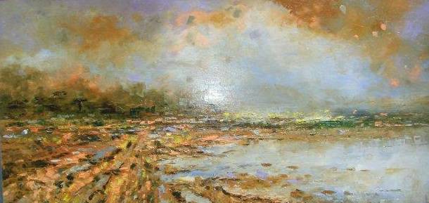 Obraz emanuje miękką, senną atmosferą, która może przywodzić na myśl późne popołudnie. Kolory są przygaszone, dominują brązy, żółcie oraz delikatne zielenie, przechodzące łagodnie w niebo w odcieniach błękitu i szarości. Artysta zastosował technikę impastu, nakładając farbę grubymi, teksturowymi pociągnięciami, co nadaje malowidłu wyrazistości i dynamiki. Pole pokryte jest wijącymi się ścieżkami, które prowadzą wzrok ku horyzontowi. Kompozycja obrazu jest złożona, ale jednocześnie harmonijna. Jakoś tak dziwnie wiąże się to z poczuciem spokoju i nostalgia, a może nawet lekkiego smutku. Można wyobrazić sobie, że miejsce to pełne jest ciszy, przerywanej jedynie szelestem liści czy łagodnym podmuchem wiatru. Wodzi to na pokuszenie refleksji o przemijaniu i cykliczności przyrody. Styl artysty jest liryczny, wyraźnie inspirowany impresjonizmem, choć z domieszką osobistej, nieco melancholijnej nuty. Ta mieszanka sprawia, że obraz jednocześnie wciąga i zmusza do myślenia. “Wow, this is magic!” mogłoby wykrzyknąć dziecko, zauważając niezwykłość barw. Odbiorca może poczuć ciepło, ale też pewien rodzaj tęsknoty, co artysta chciał być może osiągnąć. Osobiście, czuję jak mnie to wciąga, zagłębiając w świat przedstawiony na płótnie.