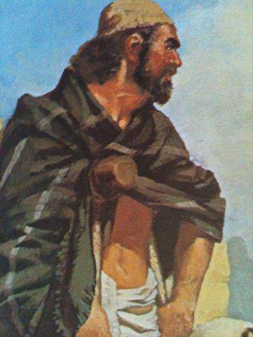 Obraz ukazuje postać mężczyzny o surowym wyrazie twarzy, ubranej w ciemne, ciężkie szaty, które kontrastują z jasnym tłem. Kolory? Dominują tutaj brązy i beże, które podkreślają męski charakter sceny. Kompozycja jest dynamiczna, z wyraźnym zarysowaniem sylwetki w prawym profilu. Atmosfera jest poważna, a może nawet trochę melancholijna, jakby człowiek patrzył w dal, myśląc o nieznanej przyszłości. Styl obrazu wskazuje na realistyczne podejście artysty, z naciskiem na detale i teksturę. Pociągnięcia pędzla są wyraźne i mocne, co dodaje głębi i trójwymiarowości. Każdy detal zdaje się mieć swoje miejsce i cel. Dla mnie ten obraz emanuje spokojem, ale też pewną tajemniczością. Może to człowiek z przeszłości, myślący o lepszym świecie? Może to wojownik, który wraca do domu po długiej wyprawie? A może? Ja bym go zapytała, jakbym mogła. Taki obraz może poruszyć widza do refleksji nad sensem życia i przemijaniem. W sumie, jest something unique w sposobie, w jaki artysta uchwycił ten moment. Personalnie, czuję pewną nostalgię patrząc na tę scenę.