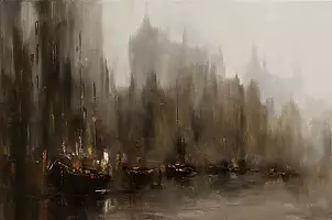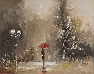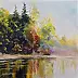 To magiczny pejzaż, gdzie kolory wprost tańczą na płótnie. Na pierwszym planie widzimy jezioro, które spokojnie odbija w swej tafli barwną paletę drzew. Zieleń liści miesza się z rdzawymi i złotymi tonami jesieni, tworząc istną symfonię kolorów. Kąty i linie są miękkie, rozdarte, jakby artysta pozwolił pędzlowi spontanicznie kreślić po płótnie. Atmosfera jest pełna spokoju, przypomina letnie poranki, kiedy świat jeszcze tylko budzi się do życia. Wyczuwalny jest impresjonistyczny styl, gdzie technika za pomocą "brushstrokes" nadaje obrazowi eteryczny, niemal ulotny charakter. Obraz przywołuje na myśl ulotne chwile spokoju, wywołując w patrzącym tęsknotę za przyrodą. Można poczuć ten zapach mchu i ziemi, usłyszeć szelest liści na wietrze. Nastrój to takie "ah, tak być tam". Małe dziecko powiedziałoby: "Patrz, drzewa są magiczne i wyglądają jak cukierki". Całość zdaje się szeptać, że w prostocie natury tkwi prawdziwe piękno, a oglądając to dzieło, człowiek ma ochotę wskoczyć przez ramę obrazu do tego bajkowego świata. Artysta mistrzowsko operuje światłem, które delikatnie przebija się przez liście, nadając całości niemal magiczny, nierealny blask. To po prostu mesmerizing, co wywołuje wręcz medytacyjny nastrój. Coś pięknego!