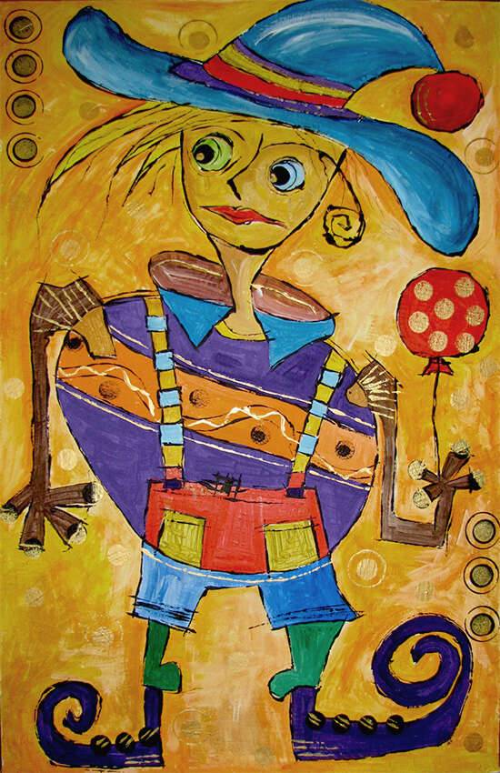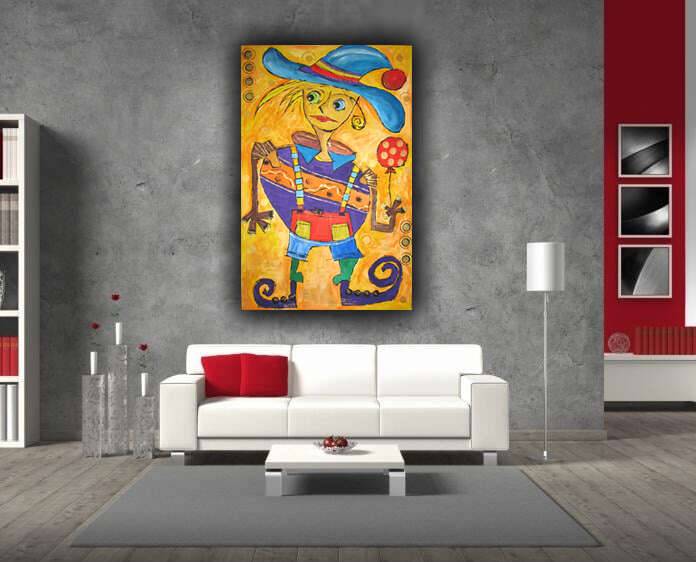 akryl na płycie malarskiej na ramie, format 83 na 53 centymetrów, boki zamalowane, gotowy do powieszenia, sygnowany.