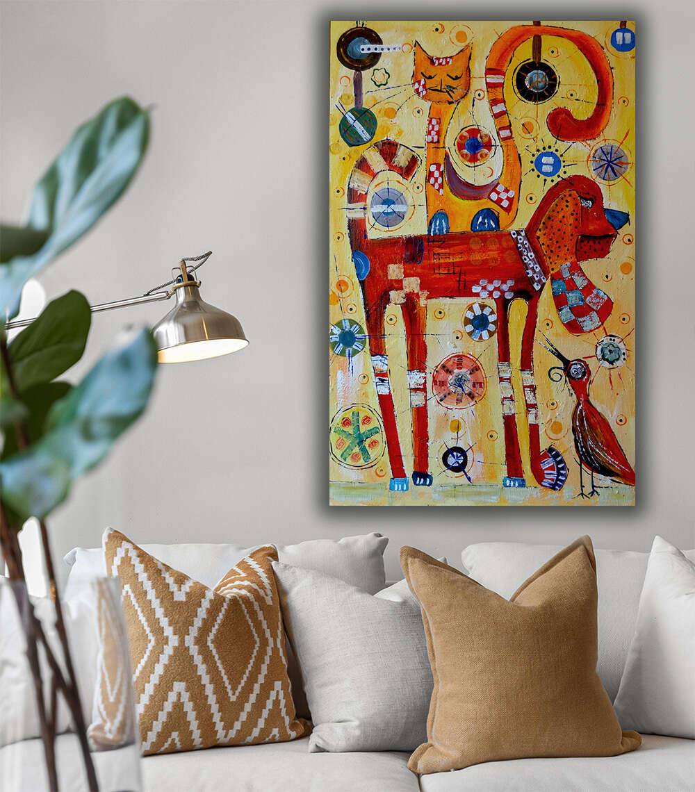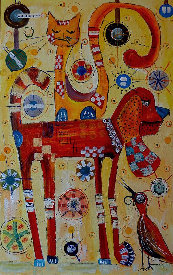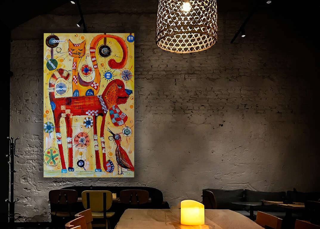 akryl na płycie malarskiej na ramie, format 84 na 53 centymetrów, boki zamalowane, gotowy do powieszenia, sygnowany.