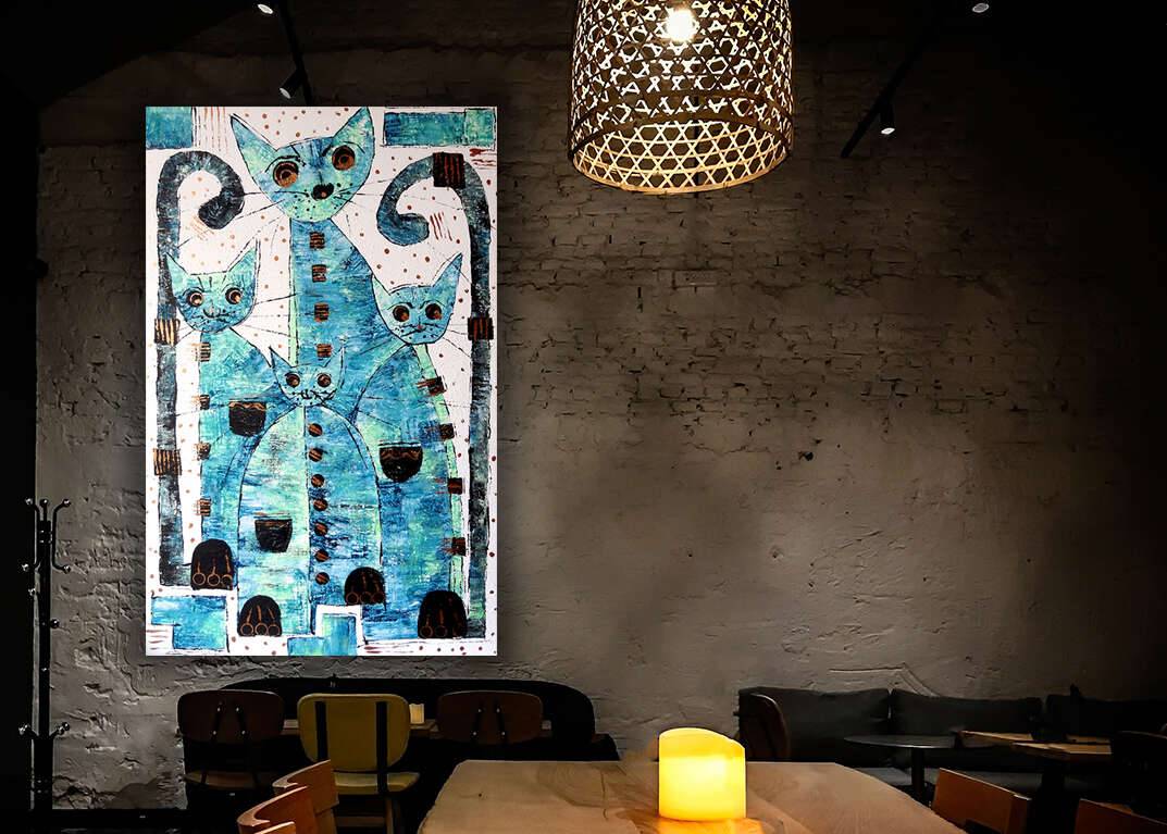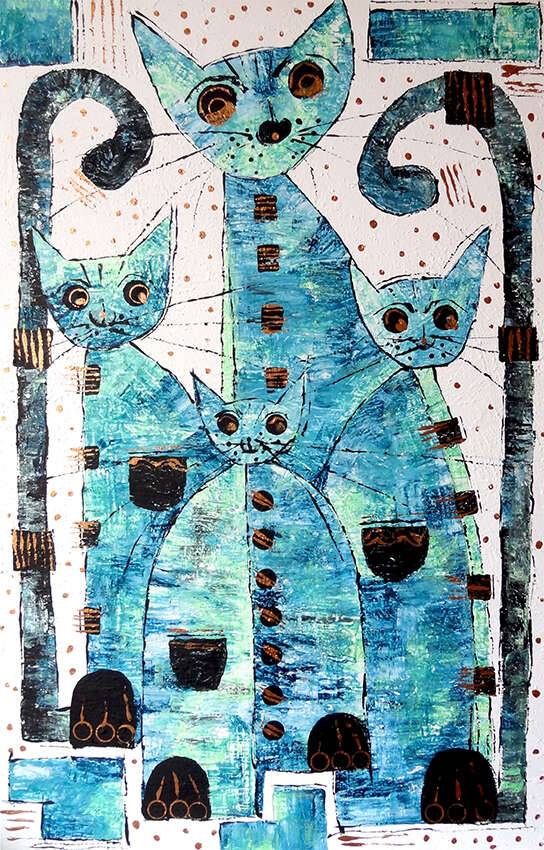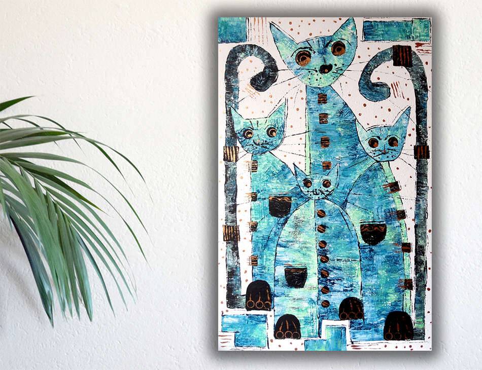 akryl na płycie malarskiej na ramie, format 84 na 53 centymetrów, boki zamalowane, gotowy do powieszenia, sygnowany.