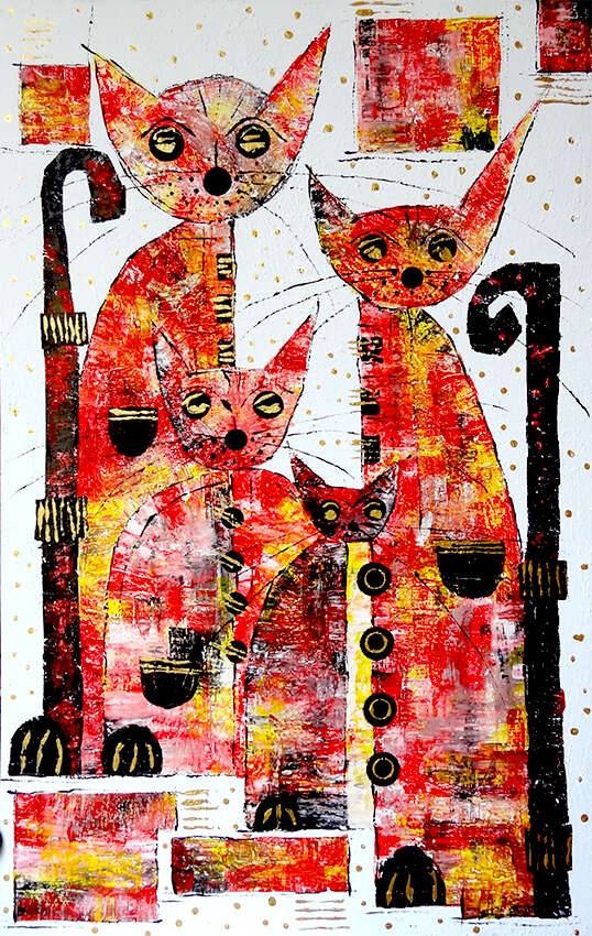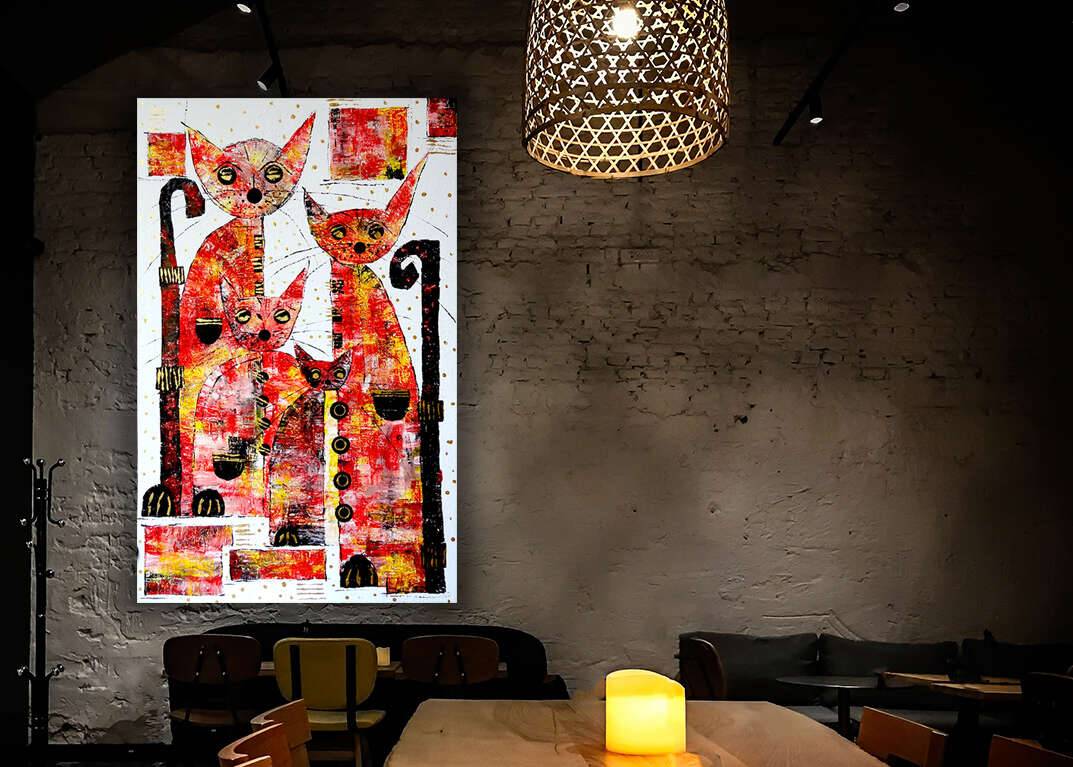 akryl na płycie malarskiej na ramie, format 84 na 53 centymetrów, boki zamalowane, gotowy do powieszenia, sygnowany.