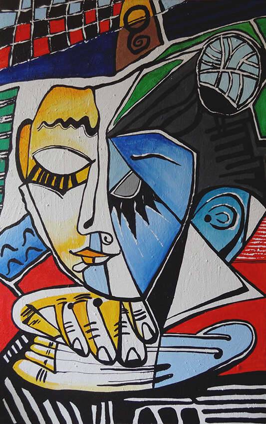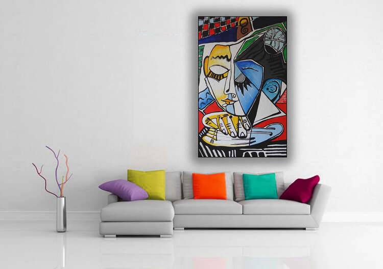 akryl na płycie malarskiej na ramie, format 84 na 53 centymetrów, boki zamalowane, gotowy do powieszenia, sygnowany.