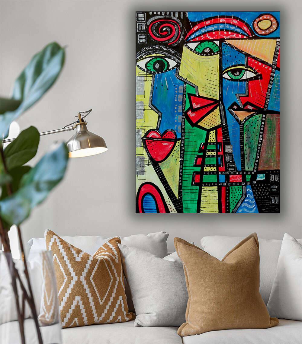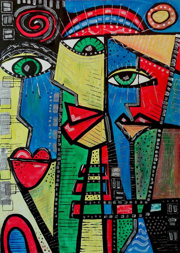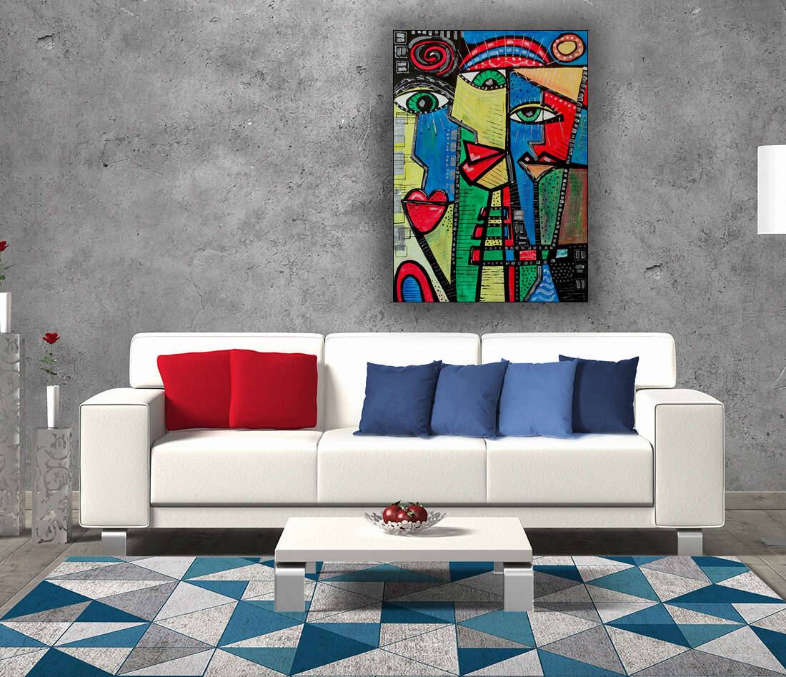 akryl na płycie malarskiej na ramie, format 70 na 50 centymetrów, boki zamalowane, gotowy do powieszenia, sygnowany.