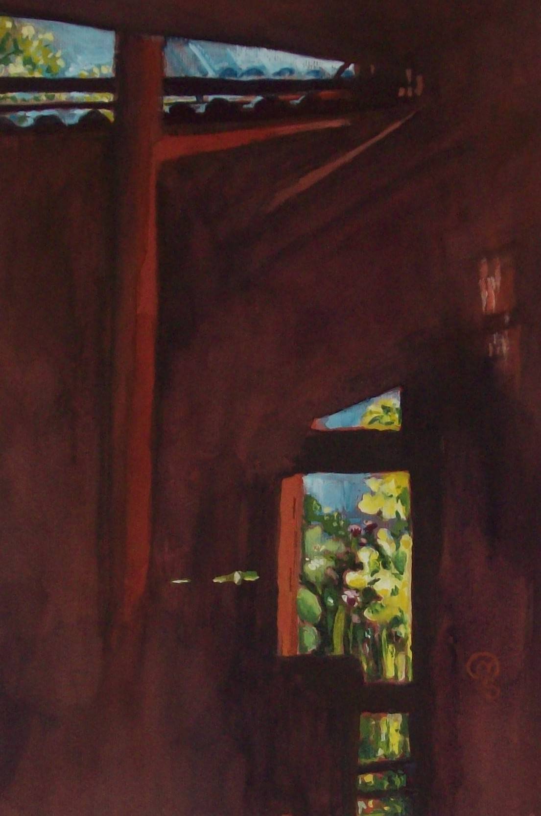 Na obrazie widzimy wnętrze, które tonie w ciemnych, głębokich brązach. Przez uchylone okno wpada promień światła, rozjaśniając część ściany i podłogi. Światło rzuca na powierzchnię ciepłe plamy zieleni i błękitu, które kojarzą się z wiosennym ogrodem tuż za oknem. Kompozycja jest pełna kontrastów: ciemne wnętrze kontrastuje z jasnym światem za oknem. Artysta tworzy nastrój spokoju i tajemnicy, jednocześnie budząc ciekawość, co kryje się poza kadrem. Styl jest zdecydowanie impresjonistyczny, pełen delikatnych pociągnięć pędzla i subtelnych przejść tonalnych. Myślę sobie, że to trochę jak opowieść, w której każdy szczegół ma swoje miejsce. Jedno zdanie do dzieciaka: Okno świeci jak bajkowy portal do magicznego świata. Użycie techniki światła i cienia sprawia, że obserwator odczuwa wewnętrzny spokój, ale też nutkę tęsknoty za tym, co nieznane. A ten garden na zewnątrz zdaje się pulsować życiem, co dodaje obrazu dynamiki. Ech, aż chce się tam iść i popatrzeć na to z bliska!
