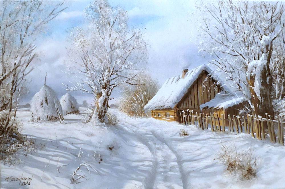 M. Szczepaniak "Na skraju wsi" olej na płótnie 60x40cm wykonany ręcznie, sygnowany, werniksowany