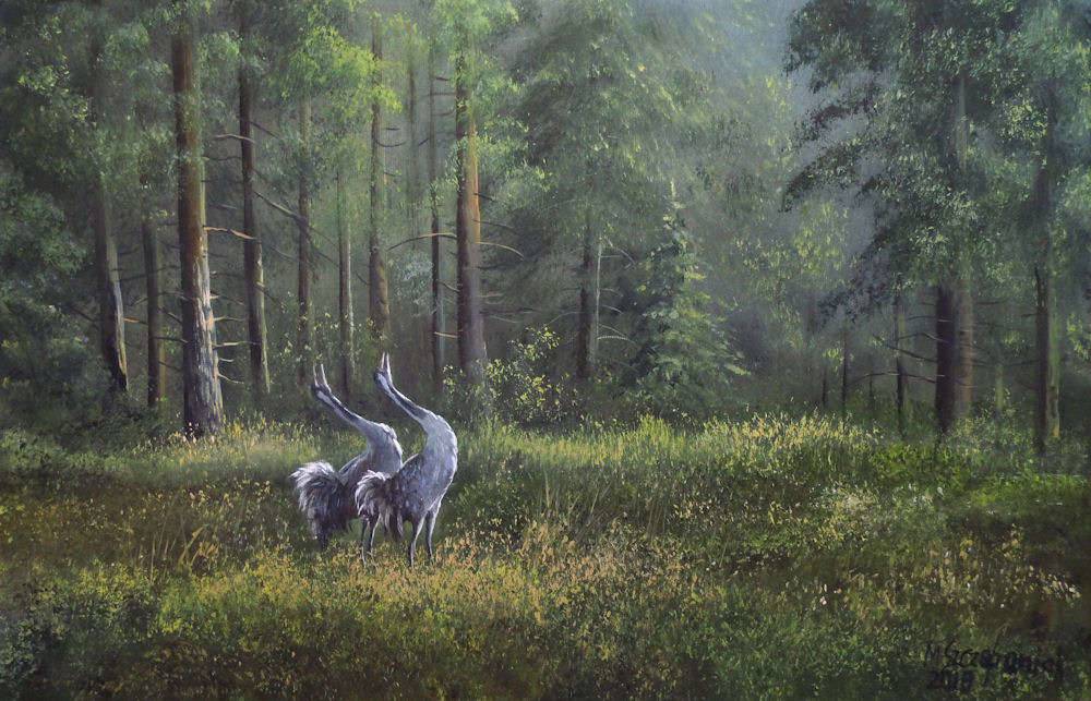 M. Szczepaniak "Na skraju lasu" olej na płótnie 60x40cm wykonany ręcznie, sygnowany, werniksowany