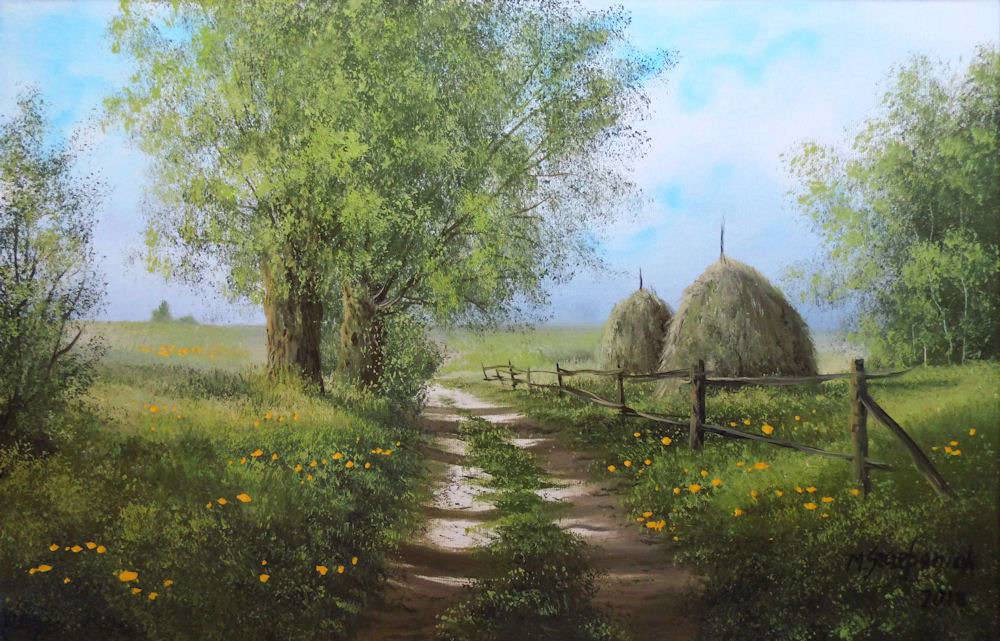 M. Szczepaniak "Droga na łąki" olej na płótnie 60x40cm wykonany ręcznie, sygnowany, werniksowany