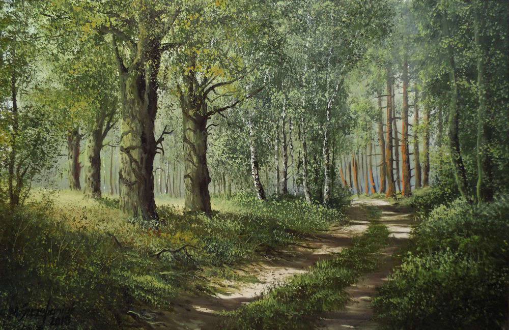 M. Szczepaniak "Droga pod dębami" olej na płótnie 60x40cm wykonany ręcznie, sygnowany, werniksowany
