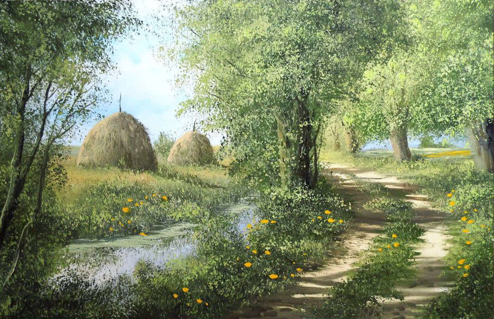 M. Szczepaniak "Droga na łąki" olej na płótnie 60x40cm wykonany ręcznie, sygnowany, werniksowany