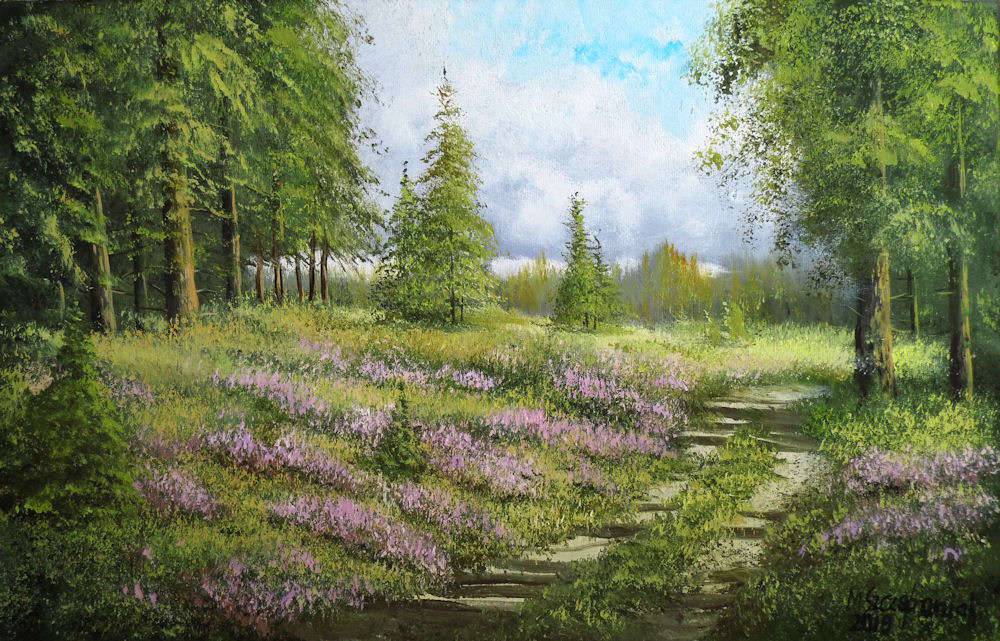 M. Szczepaniak "Wrzosowisko" olej na płótnie 60x40cm wykonany ręcznie, sygnowany, werniksowany