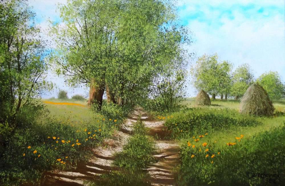 Marek Szczepaniak "Droga pod wierzbami" olej na płótnie, 60x40cm, wykonany ręcznie, sygnowany, werniksowany