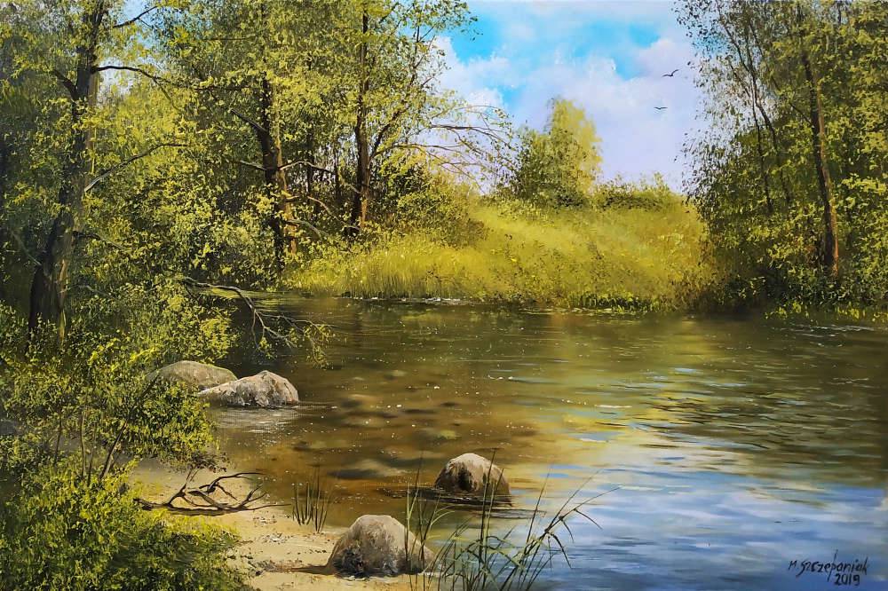 Marek Szczepaniak "Na starorzeczu" olej na płótnie, 60x40cm, na blejtramie, sygnowany, werniksowany