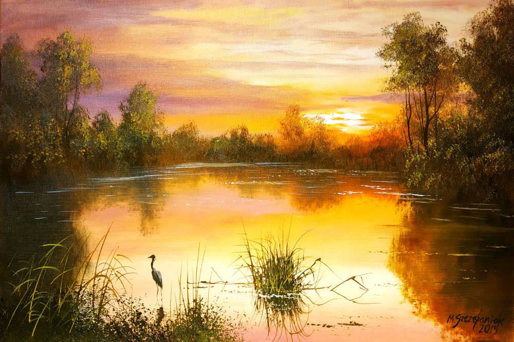Marek Szczepaniak "W zachodzącym słońcu" olej na płótnie, 60x40cm, na blejtramie, sygnowany, werniksowany
