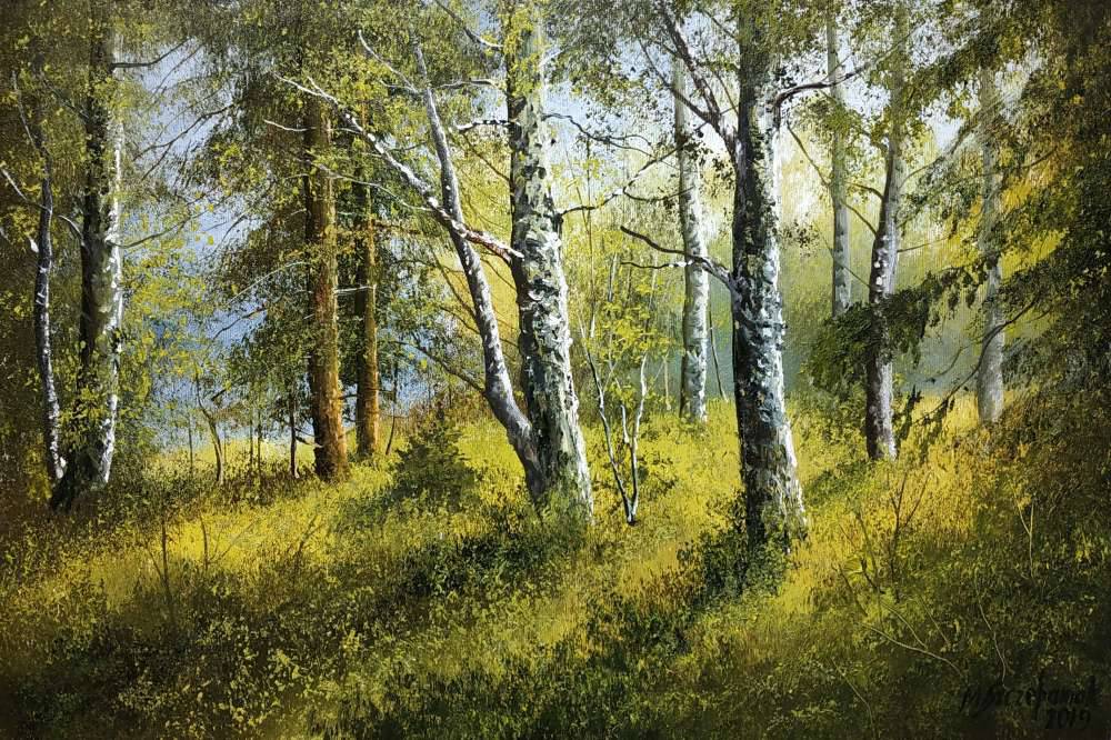 Marek Szczepaniak "Pod brzozami" olej na płótnie, 60x40cm, na blejtramie, sygnowany, werniksowany