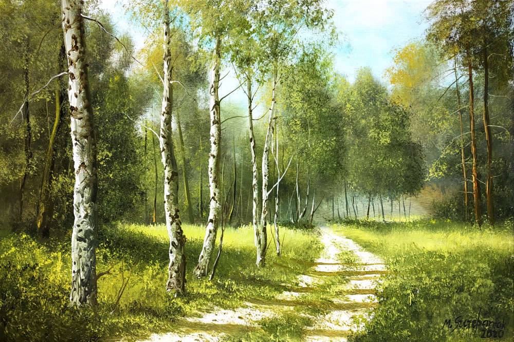 Marek Szczepaniak "Droga pod lasem" olej na płótnie, 60x40cm, na blejtramie, sygnowany, werniksowany Wysyłka: 20zł