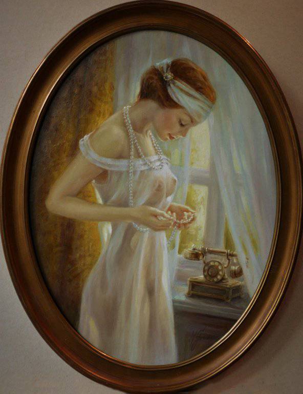 OBRAZ MALOWANY NA PŁÓTNIE NAKLEJONYM NA PŁYTĘ, OPRAWIONY W ZŁOTĄ OWALNĄ RAMĘ