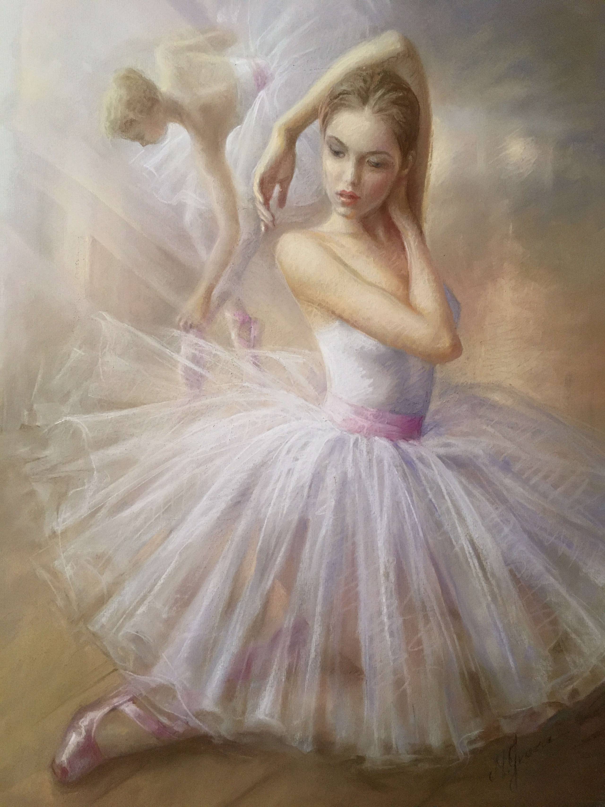 Obraz w technice pastel sucha, na kartonie CANSON, oprawiony w passe-partout i starą ,drewnianą ramę w bardzo dobrym stanie