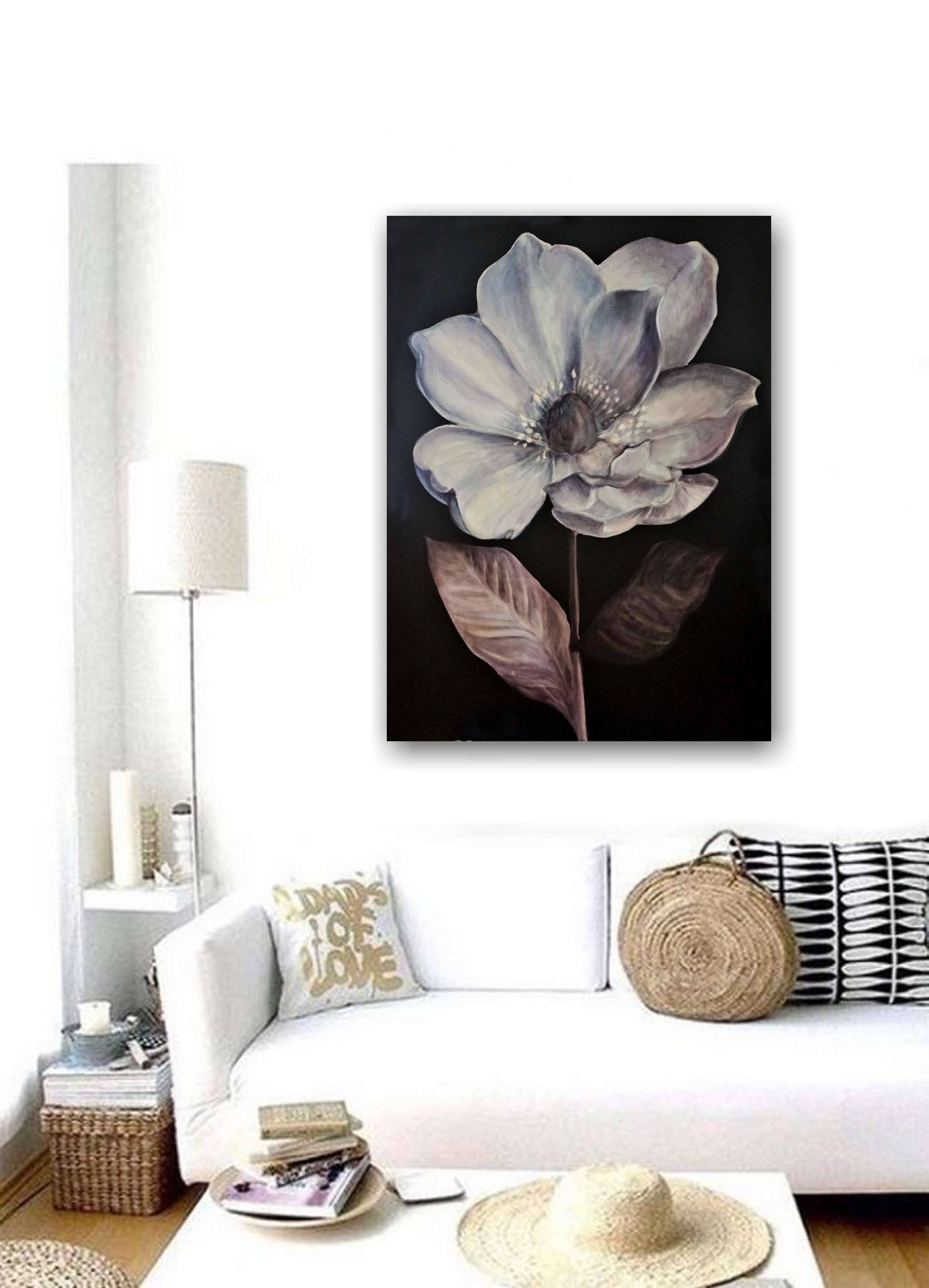 Kwiat magnolii jest nie tylko piękny, ale kryje w sobie cenne cechy, żywe historie i niesie silną symbolikę. Kwiat białej magnolii symbolizuje czystość, niewinność, wiarę, nadzieję, duchowość, miłość i troskę. Wysyła delikatne, miłe i niewinne przesłanie każdemu, kogo kochasz. Oznacza: kobiecość, piękno,czystość, godność. Obraz jest pełny majestatu, dzięki jego jego symbolicznemu znaczeniu, eleganckiej kolorystyce, nadaje się idealnie do współczesnych wnętrz.