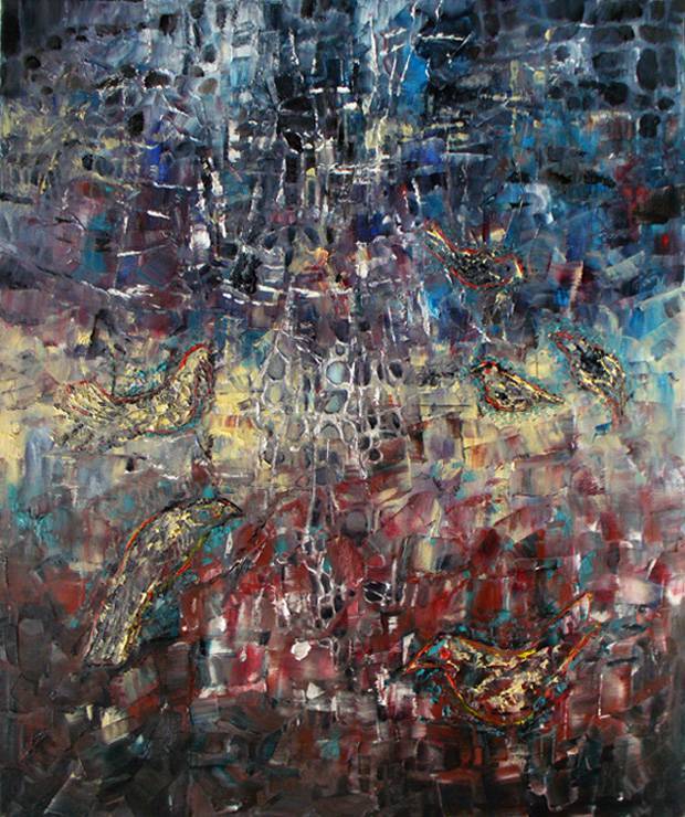 Ten obraz to prawdziwa feeria kolorów. Weźmy na tapetę dominujące odcienie błękitu, purpury i głębokiej czerwieni — eksplodują, sprawiając wrażenie czegoś magicznego. Ptaszki, które zdają się krążyć, ułożone są w dynamiczny układ, jakby zaraz miały ruszyć w nieznane. Kompozycja przywodzi na myśl chaos zamknięty w perfekcji, niczym kalejdoskop pełen niespodzianek. Całość emanuje tajemniczym nastrojem, przywodząc na myśl zimowy wieczór, kiedy śnieg wiruje w powietrzu. Styl artystyczny? No cóż, śmiesznie nieuchwytny, ale myślę, że na granicy impresjonizmu i abstrakcji. Pociągnięcia pędzla są swobodne, wręcz niechlujne w pozytywnym tego słowa znaczeniu, jakby artysta chciał przekazać emocje przez chaos. Patrząc na obraz, można poczuć ciepło i fascynację, a może nawet lekką nostalgię za czymś nieuchwytnym, something lost. Wow, jakie to piękne! Wzbudza w odbiorcy refleksję o ulotnych chwilach i spontaniczności natury. Mały Jaś powiedziałby: „To jak ptaszki na huśtawkach!" To też przypomina, jak artysta próbował uchwycić esencję ruchu i światła. Blaski i cienie przecinają się, tworząc niemal hipnotyczny efekt. Fascynujące, prawda?