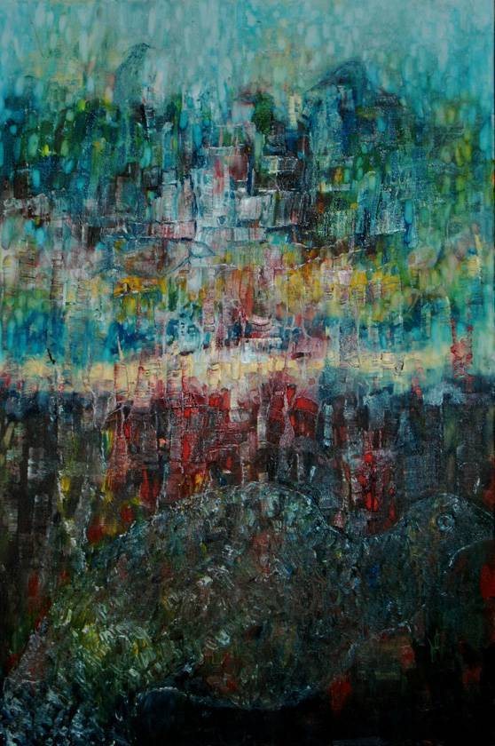 Obraz, który widzimy, to prawdziwa symfonia kolorów i faktur. Dominują tu chłodne błękity i zielenie, przetykane ciepłymi odcieniami czerwieni i ziemistych brązów. Malarska kompozycja jest dynamiczna, z wieloma drobnymi, geometrycznymi kształtami, które tworzą coś jakby abstrakcyjny krajobraz. Atmosfera obrazu jest nieco tajemnicza, jakbyśmy patrzyli na zamek z mgły. Artysta zastosował technikę impasto, gdzie grube warstwy farby tworzą wyraźne, emocjonalne tekstury. To coś jak paint party, tylko bardziej sophisticated. Można poczuć pewnego rodzaju spokój, ale i zamieszanie - ten obraz to emocjonalny rollercoaster. "Patrz, wygląda jak deszczowy las!" zawołałaby zachwycona 7-latka. Na pierwszy rzut oka obraz może się wydawać chaotyczny, ale po chwili odkrywamy w nim ukryte harmonie. Dla niektórych to będzie sposób na ucieczkę od rzeczywistości, dla innych zaproszenie do medytacji. Szczerze mówiąc, patrząc na to dzieło, czuję, jak moja dusza odpoczywa. To jak jeden kawałek układanki, który idealnie pasuje do nieułożonego dnia. Myślę, że ten obraz ma coś z magical aura. Czasem sztuka naprawdę potrafi nas zaskoczyć, a ten obraz jest tego oszałamiającym dowodem.
