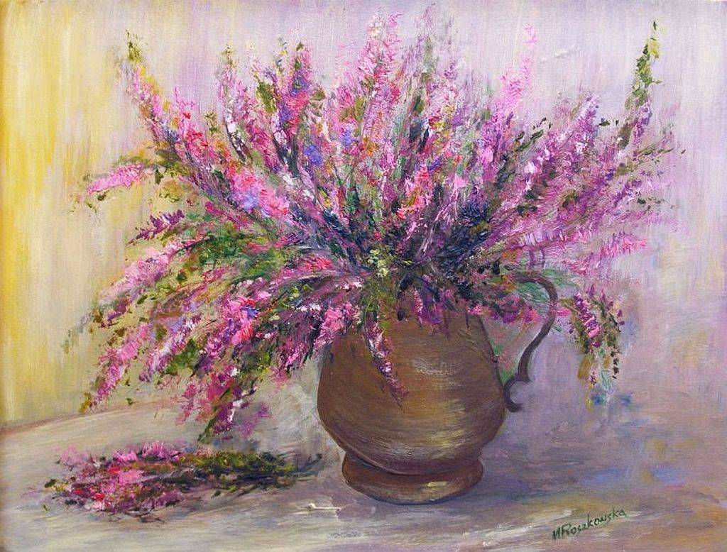 Obraz namalowany na grubej, zagruntowanej płycie kartonowej. Zawerniksowany. Farby profesjonalne.
