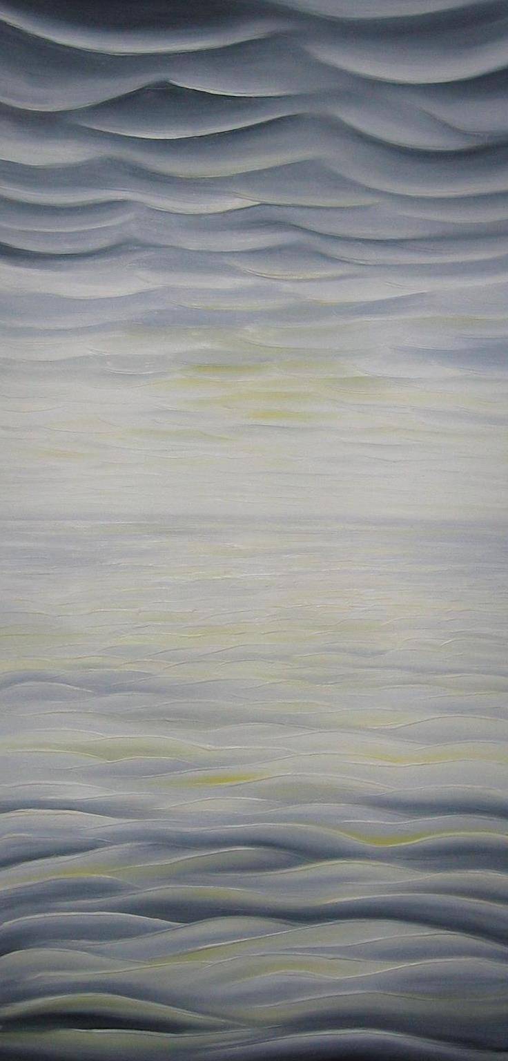 Na obrazie dominują delikatne odcienie szarości, które przeplatają się z odcieniami bieli i subtelnymi akcentami żółci. Linie tworzące fale są miękkie i płynne, jakby zapraszały do zatopienia się w spokojnej harmonii. Kompozycja sprawia wrażenie struktury morza pod wpływem łagodnego wiatru, gdzie każdy zakręt fali opowiada swoją własną historię. Ale wydaje się, że coś zasłuża na chwilę refleksji, może morze jest zmęczone? Obraz emanuje ciszą i odprężeniem, jakbyście siedzieli na brzegu jeziora o świcie. Wiesz, totalny chillout. Ilość szczegółów fascynuje, a minimalistyczny styl przypomina, że piękno tkwi w prostocie. Artysta osiągnął efekt spokoju za pomocą subtelnych pociągnięć pędzla. Wielowarstwowe zastosowanie kolorów sprawia, że widz może czuć emocje związane z dystansem i tęsknotą. Moja siostra powiedziałaby, że wygląda jak niebo pełne chmur z bajki. Zastanawiam się, jak wyglądałby z odrobiną more vibrant kolorów, ale wtedy chyba straciłby cały swój urok. Refleksja nad tym dziełem może prowadzić do różnych interpretacji mogących przywieść na myśl emocjonalne podróże i wewnętrzny spokój.