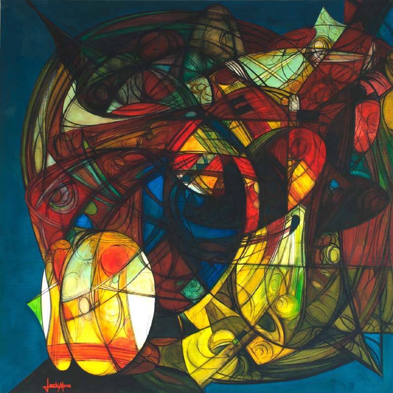 Obraz kipi kolorami jak tęcza po deszczu. Mamy tu czerwienie, żółcie, zielenie, a wszystko to splecione w zawiłe wzory. Kształty nie mają jednoznacznych form, są raczej abstrakcyjną plątaniną, która przypomina kalejdoskop. Choć na pierwszy rzut oka chaotyczne, to jednak każdy element wydaje się być na swoim miejscu, jakby wszystko miało ukrytą logikę. Atmosfera tego dzieła jest niezwykle dynamiczna, pełna energii i ruchu. No tak, jakby artysta uchwycił chwilę pełną emocji zatrzymaną w czasie. Technika? To chyba olej na płótnie, ale kto tam wie... Może mixed media, w końcu wygląda jak fusion art. Spontaniczne plamy koloru przeplatają się z precyzyjnie zaznaczonymi konturami, co sprawia, że obraz zyskuje głębię i bogactwo tekstur. Emocje? Wow! Obraz wywołuje zaskoczenie, fascynację, a może nawet lekkie zagubienie. Przypomina sen, w którym wszystko jest możliwe. Dzieciak powiedziałby: wyglada jak wielki bałagan pełen kolorowych rzeczy. To prawda, ale jaki piękny bałagan! Obraz wciąga odbiorcę w wir myśli, prowokuje do zastanowienia, czym właściwie jest. Artystyczne "Adventure" dla ducha i umysłu. Absolutnie fascinating!
