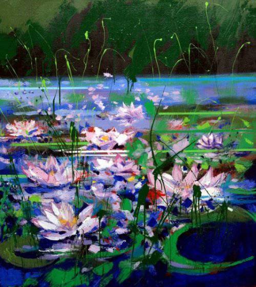 Ten obraz to prawdziwa uczta dla oczu. Dominują na nim różnorodne odcienie zieleni i błękitu, które przeplatają się z delikatnymi pociągnięciami bieli i różu przedstawiającymi nenufary na tafli spokojnej wody. Kolory są soczyste, niemal hipnotyzujące. Kompozycja obrazu przyciąga uwagę, skupiając się na centralnej części obsypanej kwiatami, podczas gdy tło tonie w tajemniczej zieleni przypominającej gęsty las. Ogólnie rzecz biorąc, dzieło emanuje spokojem i ciszą, a jednak jest w nim coś energicznego. Artysta wykorzystał technikę impasto, nadając dziełu trójwymiarowy efekt. Te grube plamy farby sprawiają, że kwiaty wydają się niemal żywe. "Wow, te kwiatki są takie piękne!" – powiedziałoby dziecko z zachwytem. Obraz ten może wzbudzać nostalgia, wspomnienia beztroskich dni nad jeziorem. Z jednej strony uspokajający, z drugiej wciągający jak magiczny świat. The style seems to dance gracefully between realism and abstraction. Osobiście, czuć tu powiew lata, dnia pełnego ciepła i świeżości. Zanurzenie się w tej scenerii jest jak odpoczynek od chaosu codzienności.