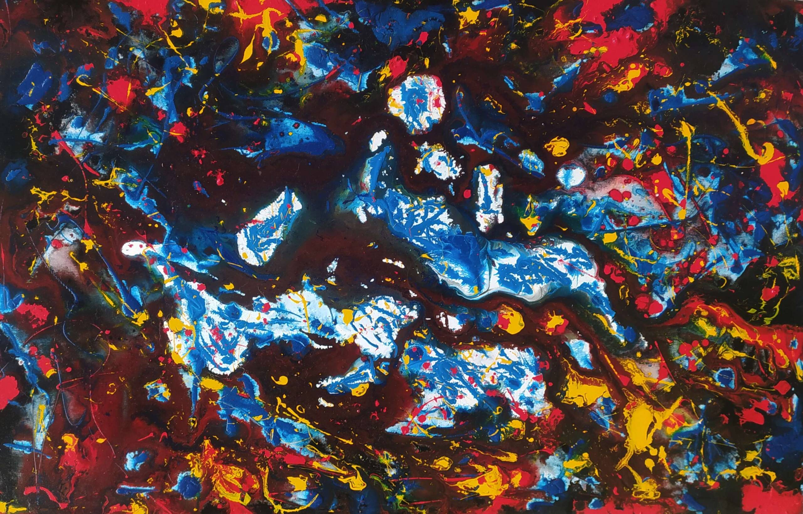 Akrylowy obrazach o rozmiarach 75x115 cm. Wielobarwna, abstrakcyjna kompozycja, idealnie sprawdzi jako dekoracja w nowoczesnym wnętrzu. Dzięki estetycznie zamalowanym bokom, nie wymaga obramowania. Obraz pobudza wyobraźnie, pozwala snuć własne marzenia i interpretacje. Barwy czerwieni, niebieskości, bieli, czerni i żółci łączą się ze sobą, tworząc niepowtarzalną kompozycje, obok której nie da się przejść obojętnie.