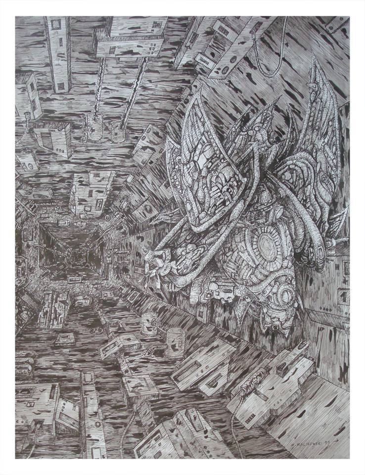 1999r.Obraz malowany na papierze,rysunek tuszem,rapidografem Obraz nieobramowany Obraz podpisany na odwrocie