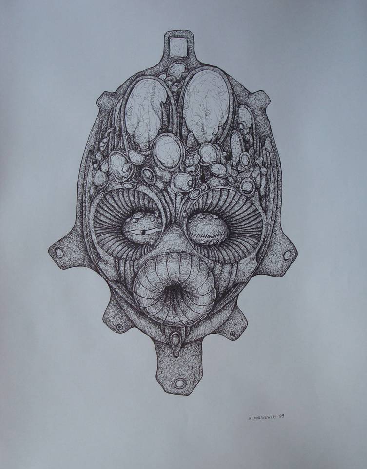 1999r.Obraz malowany na papierze,rysunek tuszem,rapidografem Obraz nieobramowany Obraz podpisany na odwrocie
