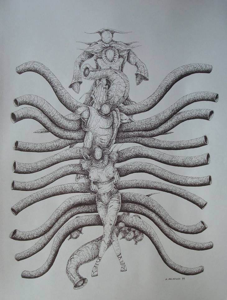 1999r.Obraz malowany na papierze,rysunek tuszem,rapidografem Obraz nieobramowany Obraz podpisany na odwrocie